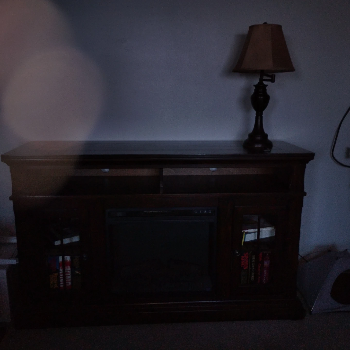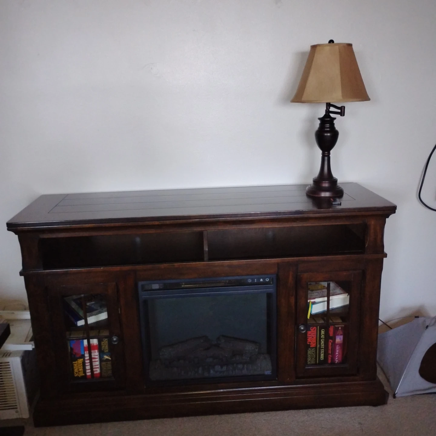 Selling a fireplace TV stand. It's in great condition and has storage on either side of the fireplace. Perfect for cozy nights in!