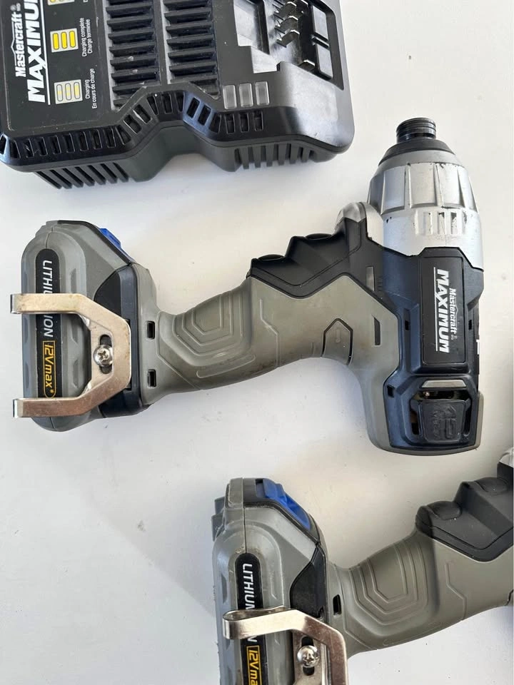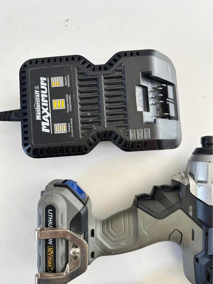 It's used, in excellent working condition. Batteries still hold a charge and are in excellent working condition. Mastercraft 12V Dual Touch™ Cordless Impact Driver and cordless drill features an innovative dual-touch switch that allows for a seamless change between forward and reverse. 850 in-lbs of torque, 1/4" Keyless hex chuck, speed range of 0-2,400 RPM and 0-3,000 BPM. Built-in LED work light. Includes two batteries, charger, and carrying bag. Pickup only @ Glynn Rd, Ajax. Please check my other ads as well, pickup only at Harwood and Kingston, Ajax. Thanks!