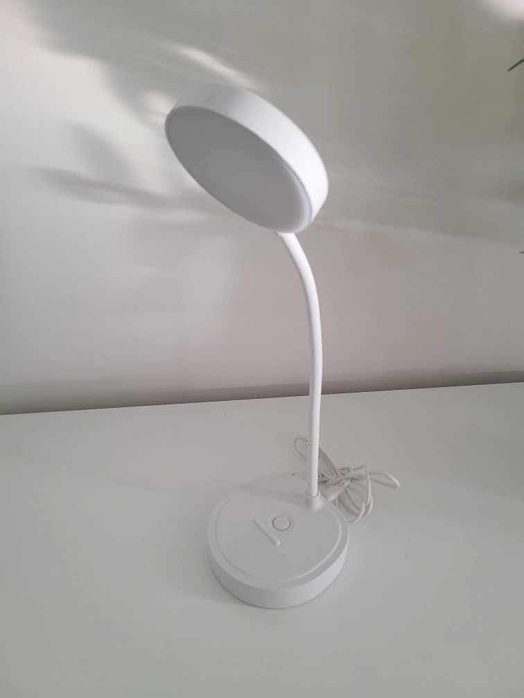 110This lamp is a great addition to any desk. It has a flexible neck so you can adjust it to the perfect angle. It has a white finish and a simple design. It's cordless making it easy to place it anywhere you like. Comes with micro USB charging cable.