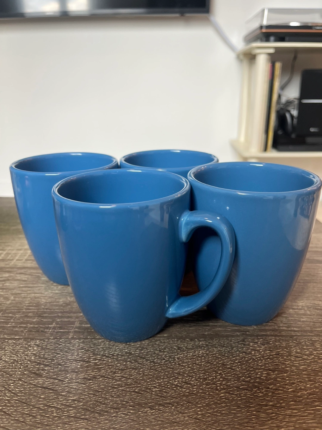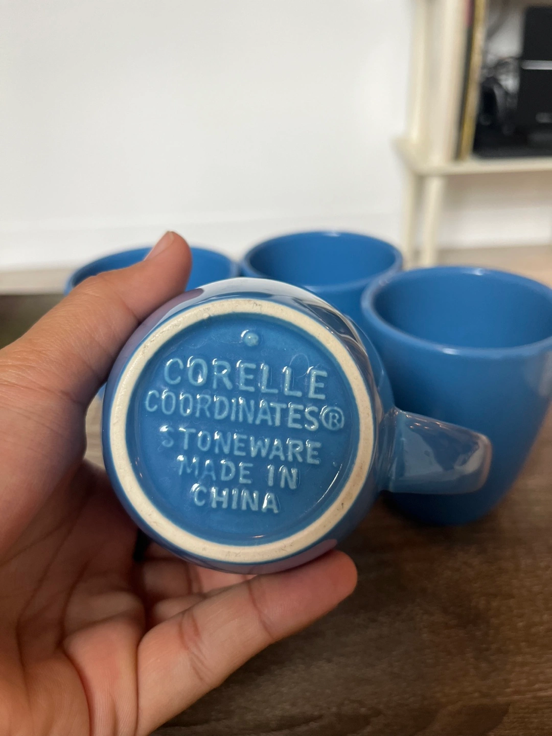 119Here's a set of 4 Corelle Coordinates stoneware mugs in a lovely blue colour. They're in great shape and ready for your morning coffee or tea!