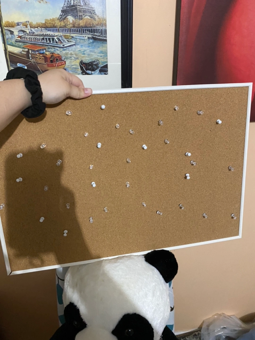 Corkboard with a white frame. Approximately 18 x 24 inches. comes with pegs. pickup only