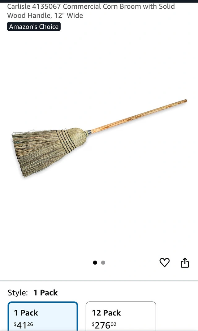 29100% natural corn and rattan blended bristles for maximum durability Increased bristle density over residential brooms for more effective sweeping 56" wooden handle for comfortable sweeping angle 5 stitch bristle binding designed to withstand daily use in a commercial janitorial environment For Sale By: Owner