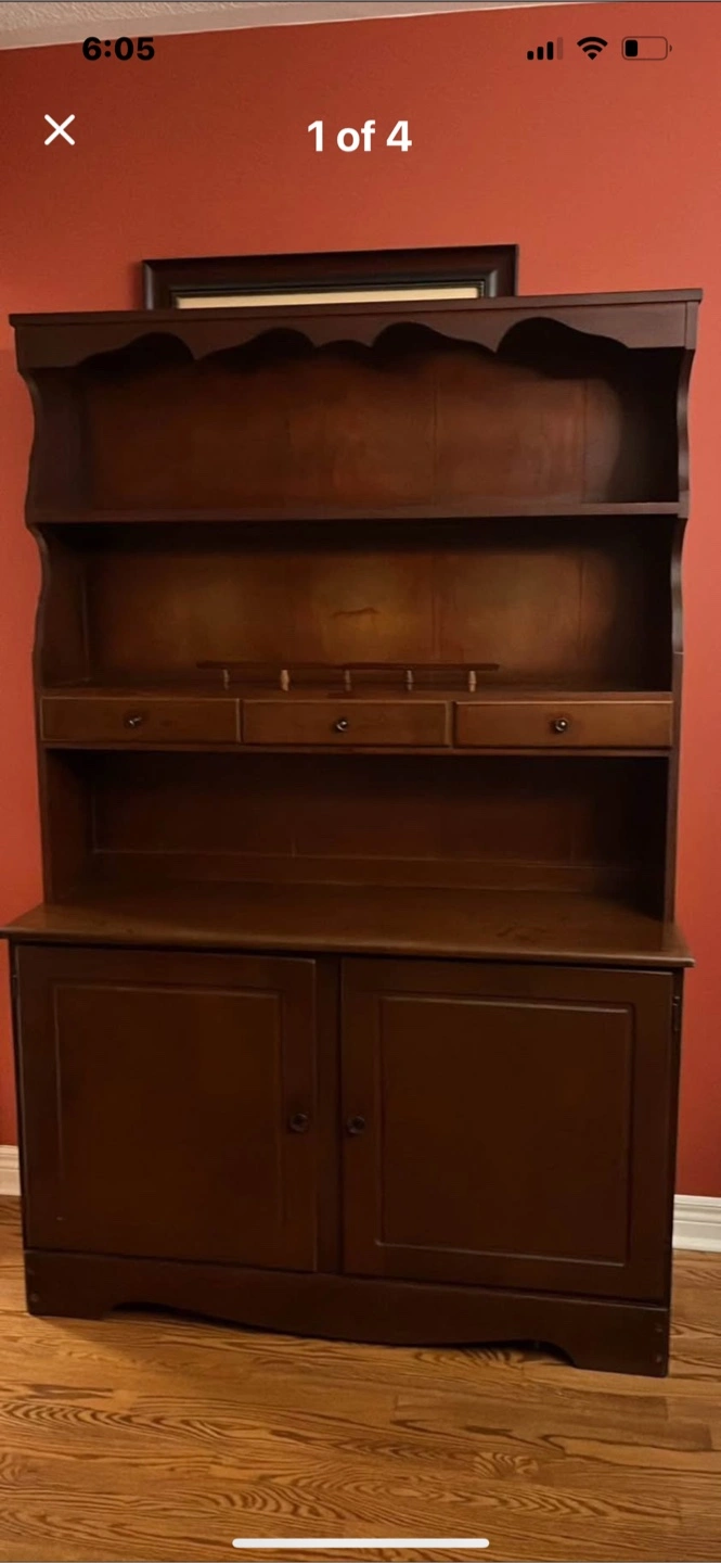 Pink bedroom set with vanity, dresser, bed frame, and mattress