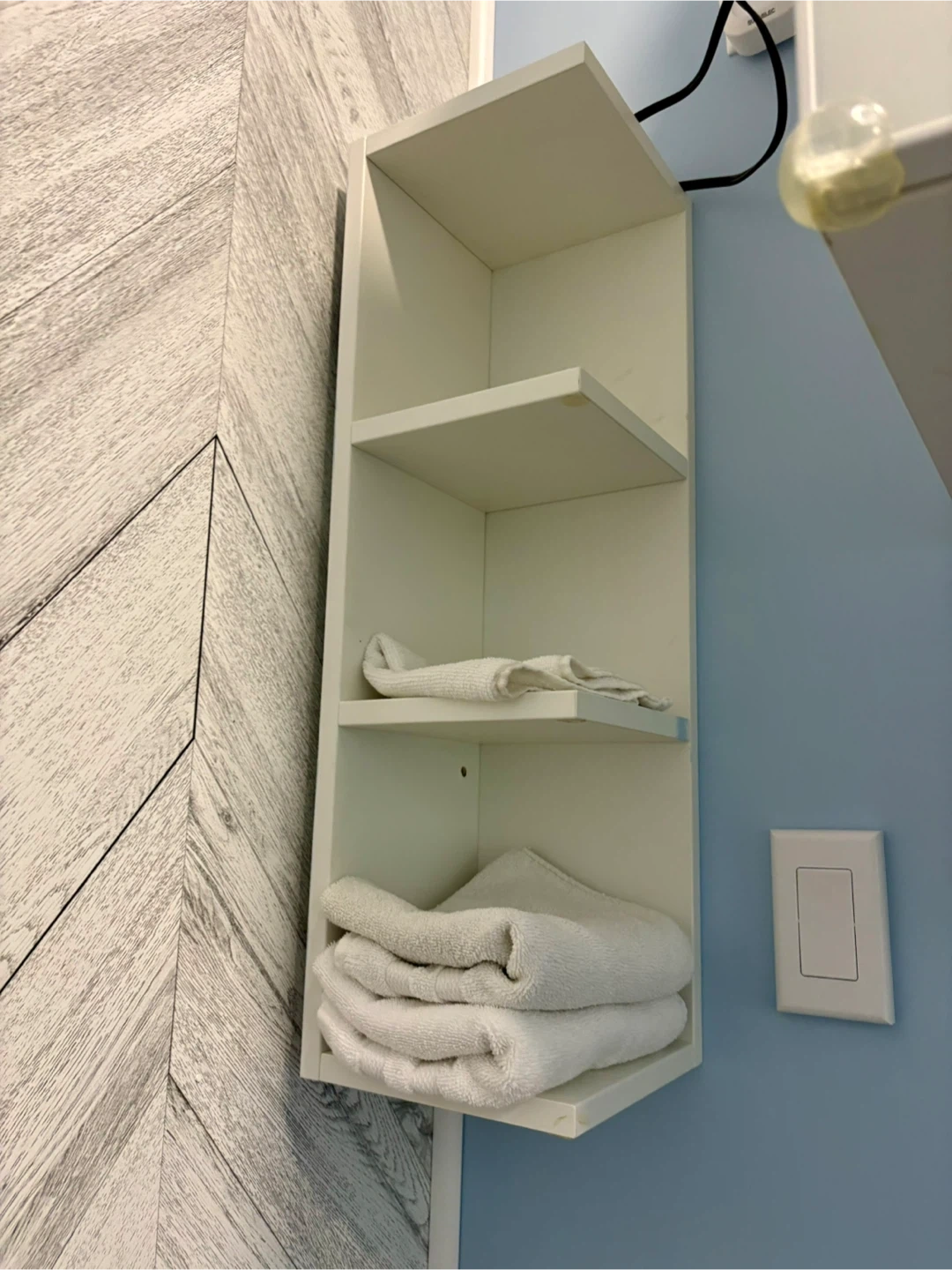 Selling a corner shelf, perfect for small spaces! It's in great condition and ready to add some extra storage to your home. It's white and has multiple shelves for organizing your things. I have 5 of them gently used I am selling. Some have minor use marks but still pretty good.