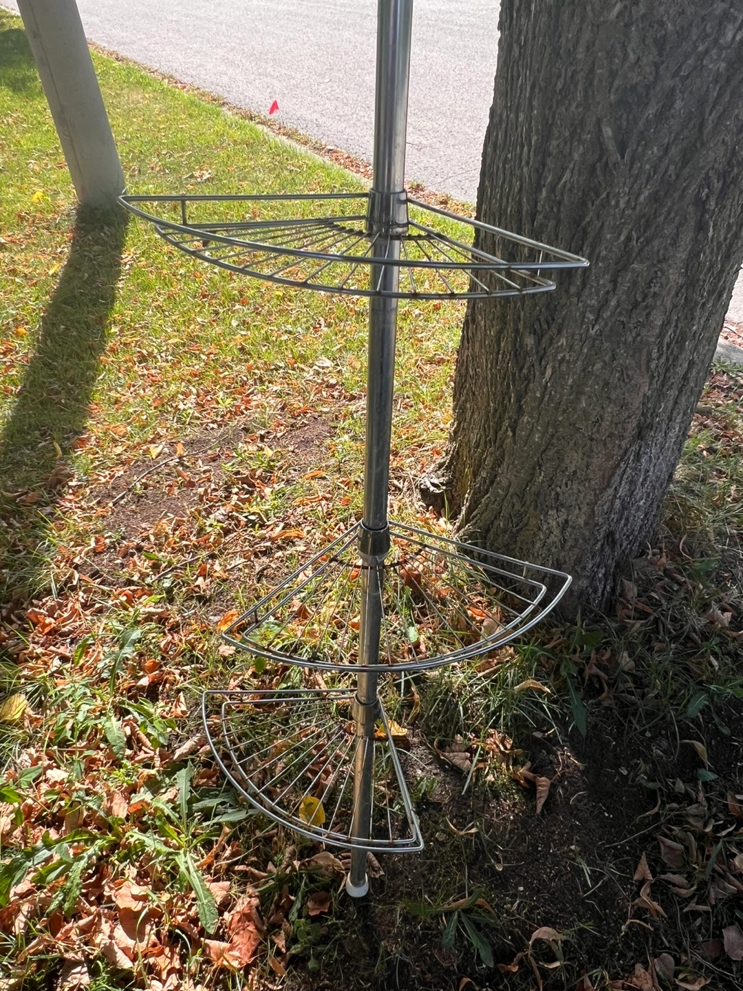 180Selling a corner shower caddy in a silver finish. It's perfect for organizing your shower essentials! It features multiple tiers to maximize storage space. This caddy is in great condition and ready to use in your bathroom Cash only Pickup in Brampton near North Park and Bramalea Rd