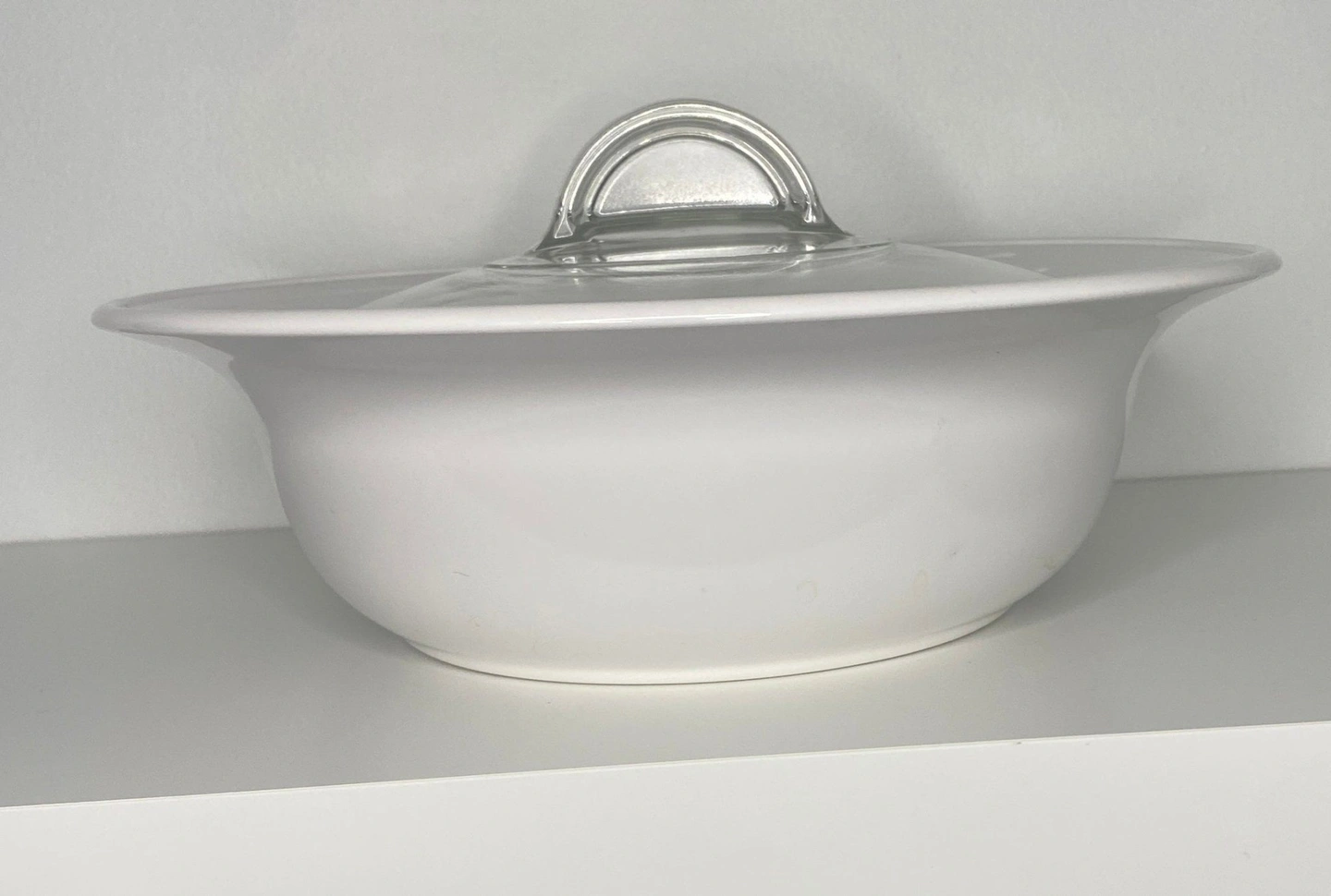 Go oven to table to fridge with the Corning Ware Casual Elegance 10 Inch Covered Casserole Dish. Designed for both beauty and function, this durable, quality casserole dish is perfect for baking, serving, and storing your favorite meals. Its sleek design and white color that is augmented with a floral design complements any table setting. Use the fitted lid to ensure heat retention and easy transport and no mess storage. A versatile essential for any home cook, it can be used to cook your favorite roast or chicken, fish or anything that you think that you can create. This Corning Ware Casual Elegance 10 Inch Covered Casserole Dish measures approximately 10 inches in diameter and 3 inches deep. There are no cracks or chips and the lid secures properly. Add timeless charm, a clean look and a versatile piece of cookware to your kitchen today with this wonderful Corning Ware Casual Elegance 10 Inch Covered Casserole Dish. Local pickup is in Etobicoke near Islington and The Westway. We offer shipping and local delivery for this item. Please send a message about availability and cost associated with these respective services.