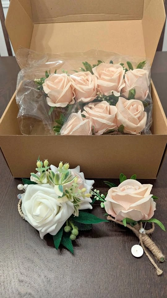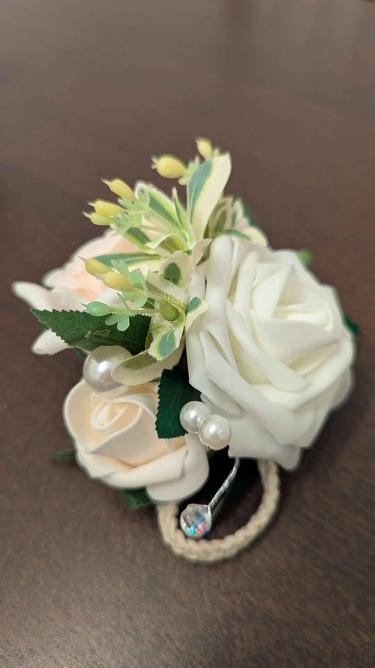 1x Corsage + 8x Boutonnieres (Champagne and White) Previously bought on Amazon for my wedding - these items are extras/used once. Selling as a set - take all for $20. Items are up if ad is up. Pick up and cash only, thank you.