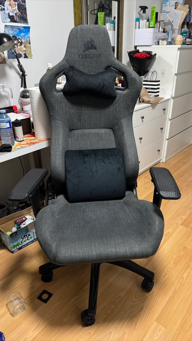 23Selling a comfy Corsair gaming chair in grey. It comes with both the head and lumbar support cushions. Perfect for long gaming sessions or working from home!