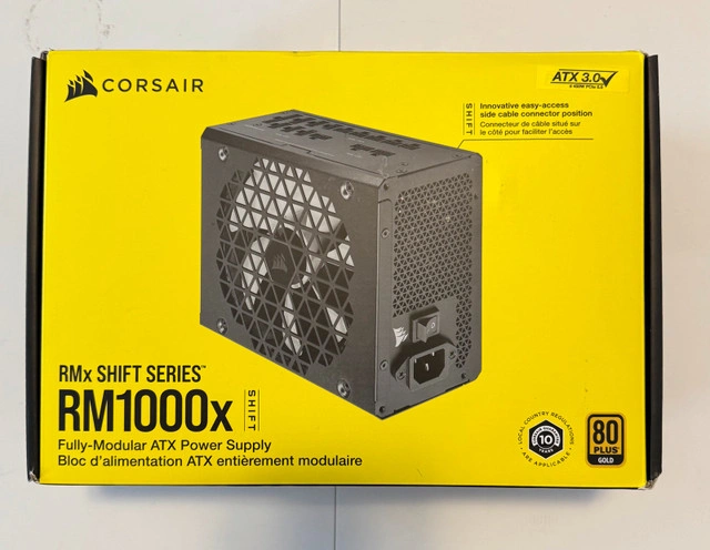 Corsair RM 1000x Shift 80+ Gold rated Power supply. Comes with all modular cables, in fully working order, not used for more than a month. Great power supply with lots of life left in it (rated for 10 years of use) and very efficient with 80+ Gold standard. Perfect for any high end gaming pc build, also support 12V high power connector. Public meetup/pickup preferred.