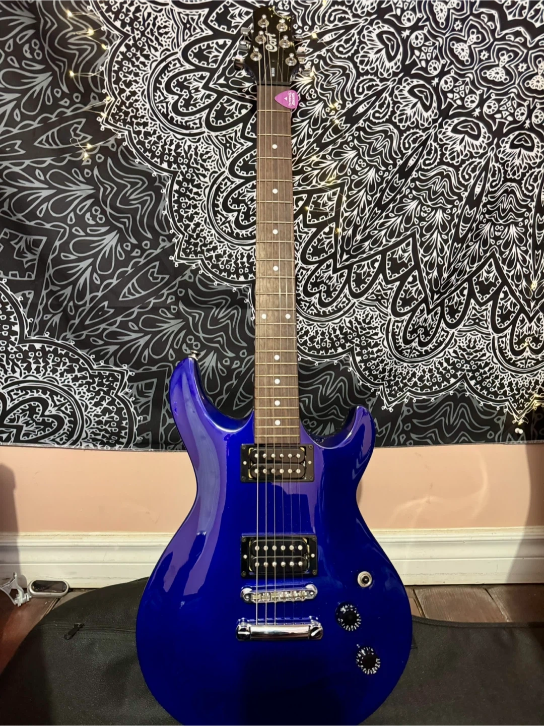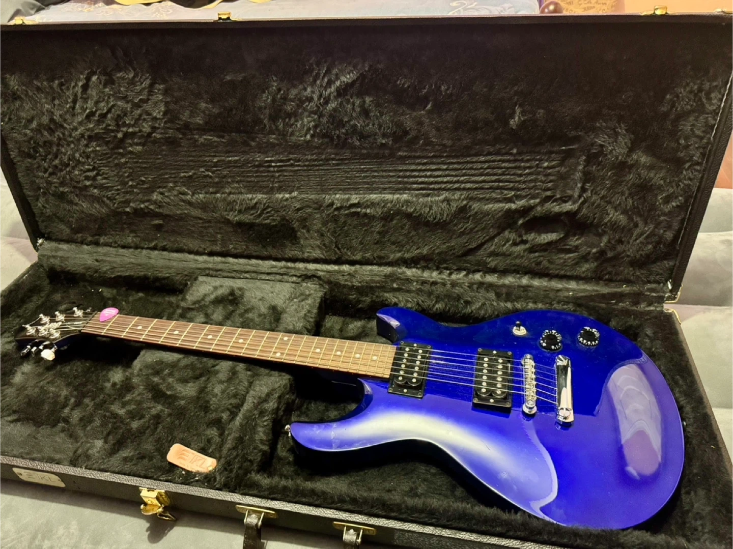 63Cort M200 (Mirage Series), PRS style double cutaway agathis body with a carved top. 2004 Model, made in Indonesia. Serial Number - 040734321 Maple Neck & Rosewood Fingerboard with 22 frets. No nicks or scratches in the guitar. I had tightened the strap pin with something. This guitar was popular in the 2000s. You don’t really see it in FB marketplace and listings in ebays are over $250+ for the guitar only. Comes with Made in Canada, TKL hardcase. The case has a tape mark (shown in picture) because I had put the tape with my name when we stored it in the basement. The inside is all good and nice. Thank you !