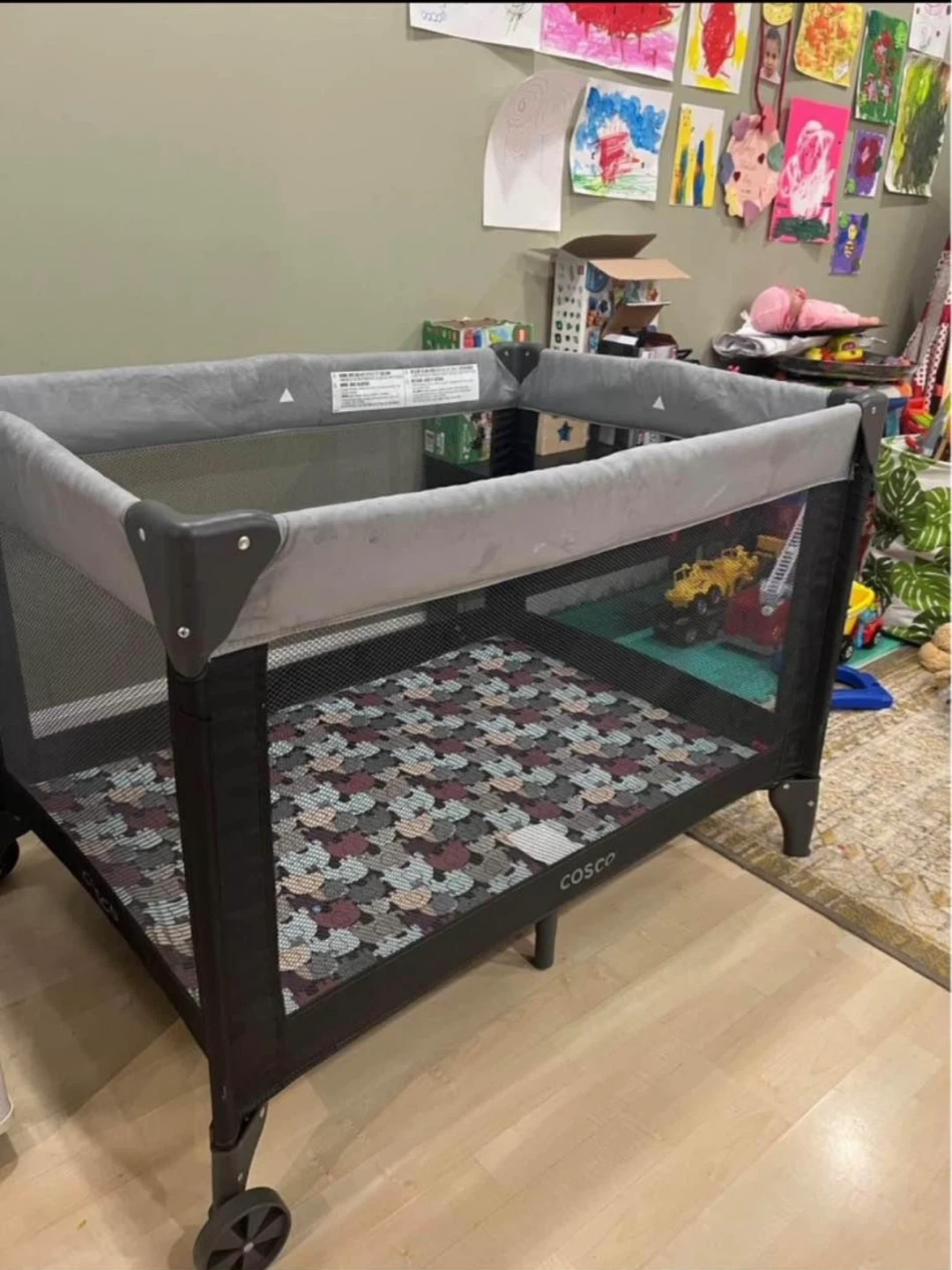 Selling a Cosco Funsport Deluxe Playard with Elephant Puzzle design and a Cosco high chair! The playard is a portable indoor/outdoor bassinet. The high chair features a cute elephant pattern on the seat. Both are in good condition and ready for a new home
