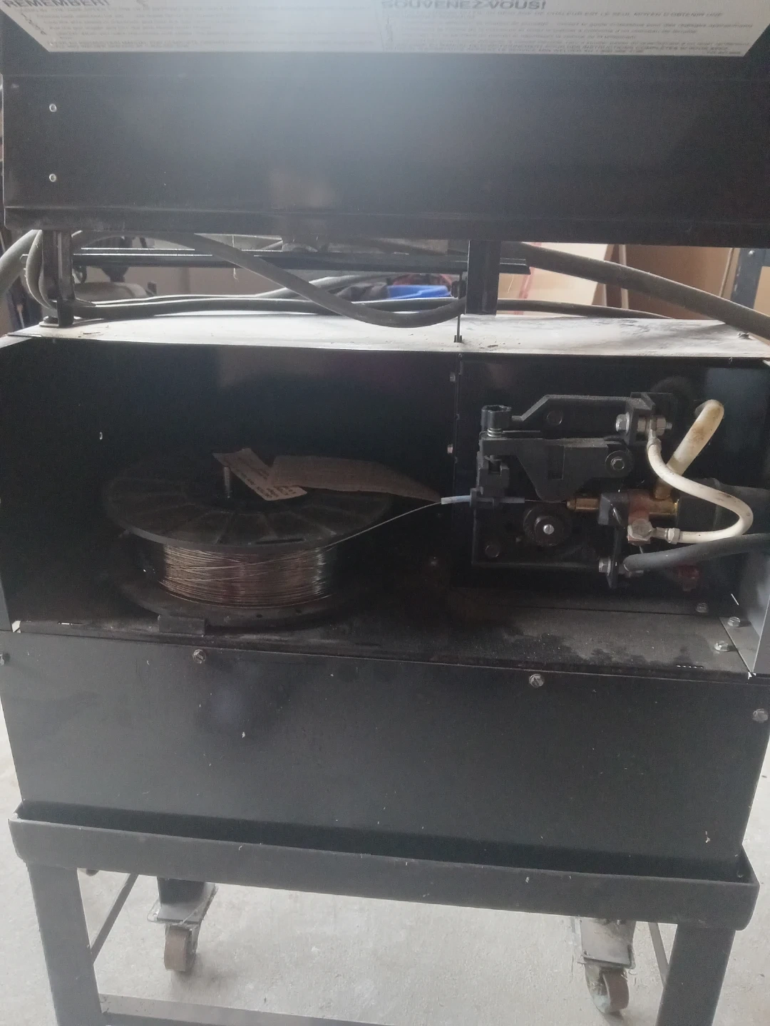 This Mastercraft wire feed MIG welder comes with a wire spool and a convenient rolling stand.