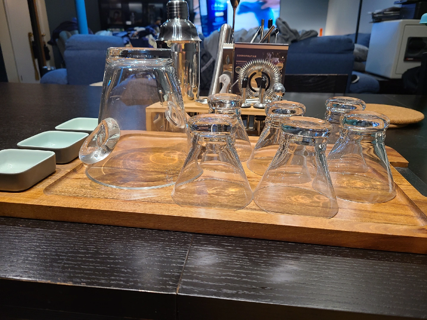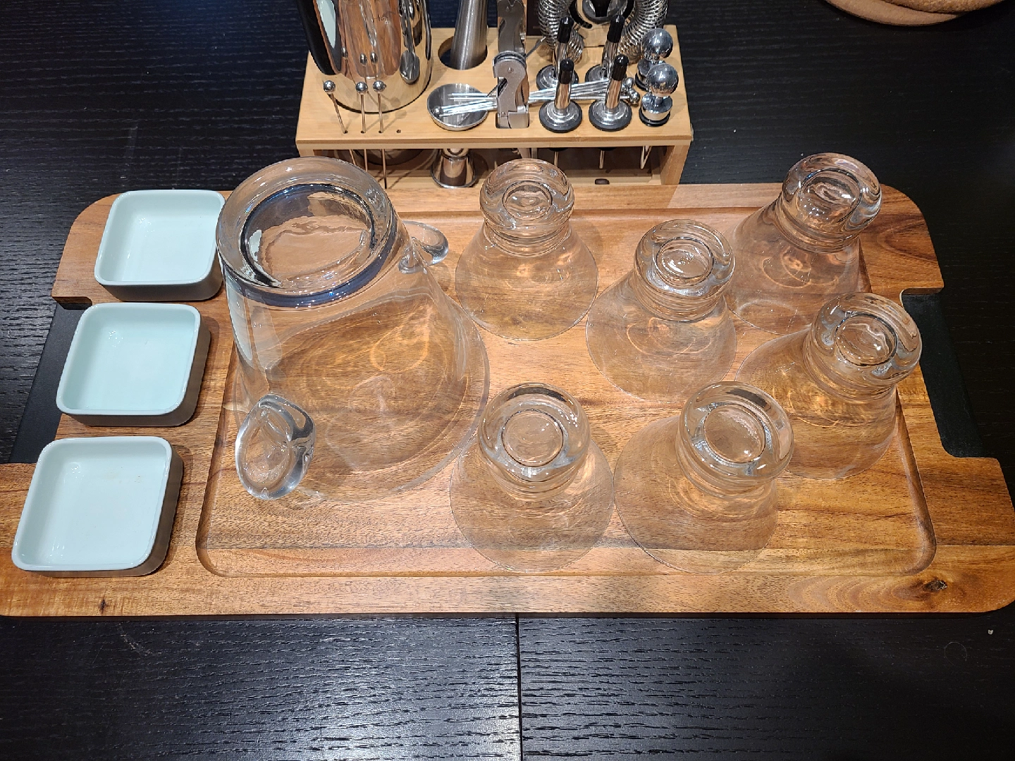 10Selling a complete cocktail making set, including a shaker, strainer, bar spoon, muddler, jigger, and other essential tools. Also comes with a set of glasses and a serving tray. Perfect for making your favourite cocktails at home!