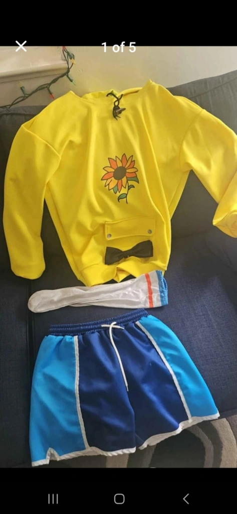 ai ohto from wonder egg priority. comes with hoodie, back bow, socks, and shorts. size L. slight staining can be removed with products. i have a styled blue wig with the hairclip for an extra $20. pickup or meet.