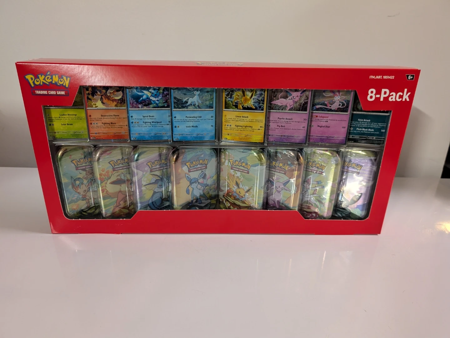 95New unopened, Pokémon Scarlet& Violet Prismatic Evolutions tins 8-pack One for $175 or two for $300
