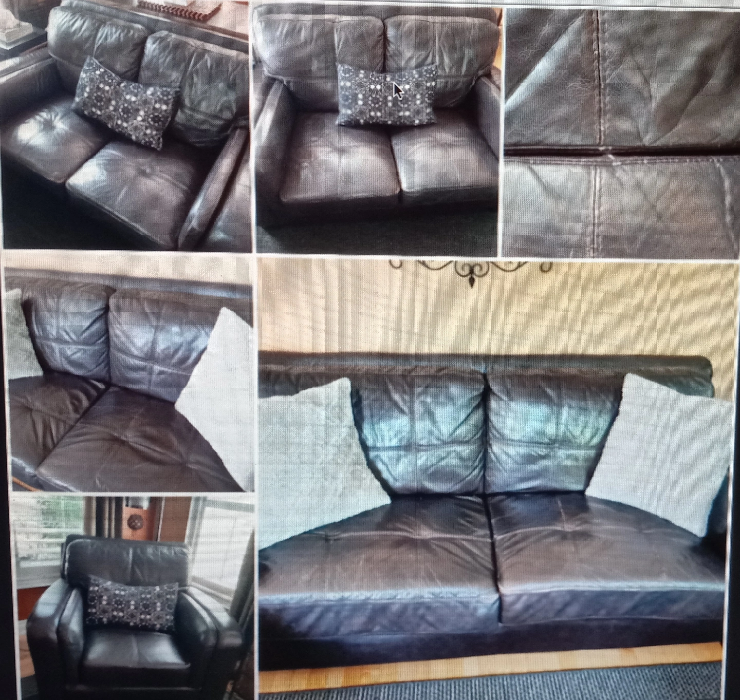 Selling a matching sofa and loveseat set in espresso/dark brown top grain leather, originally purchased from Costco for $2,500. Sofa: 77” L x 39” W x 36” H. Loveseat: 60” L x 39” Condition: Used with some wear and tear, including a couple of small rips that are mostly hidden and not very noticeable. Still very comfortable and solid — great for a family room, rental, or anyone looking for quality leather furniture at a deal. Asking $200 for the set (or best offer) — must go quickly! *Chair from picture already sold.