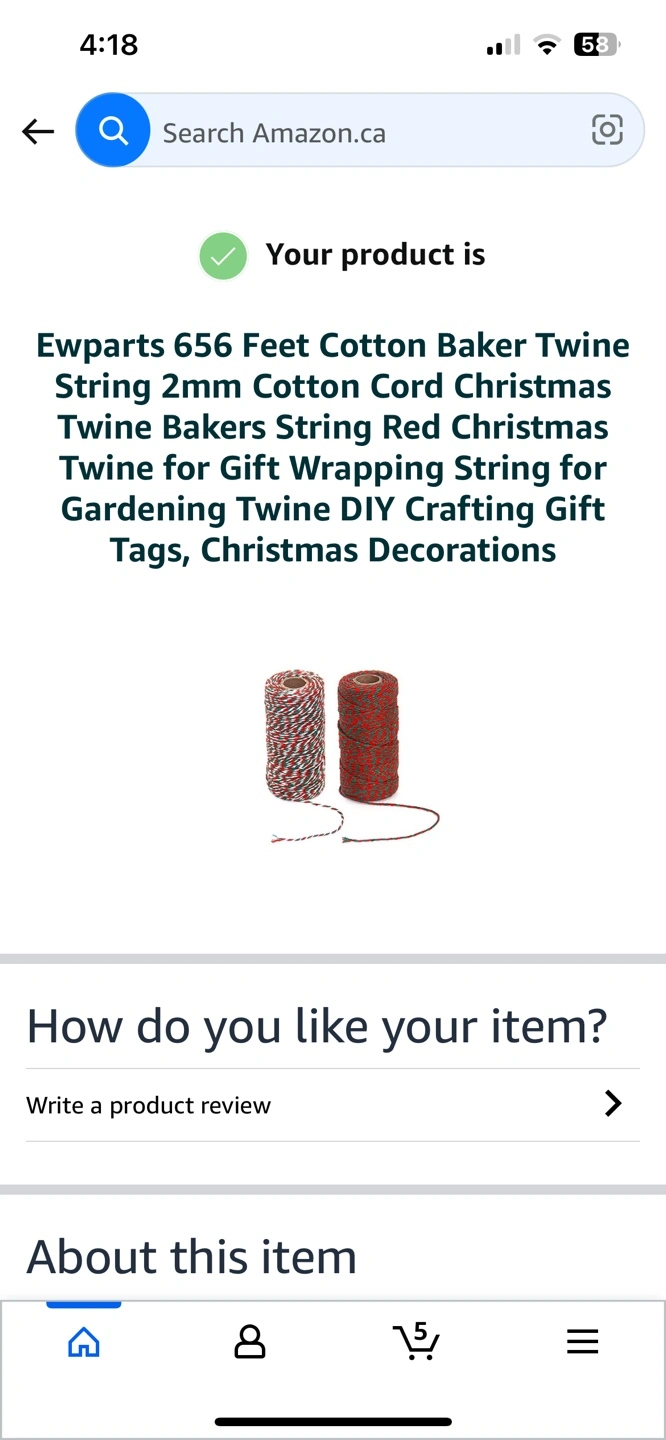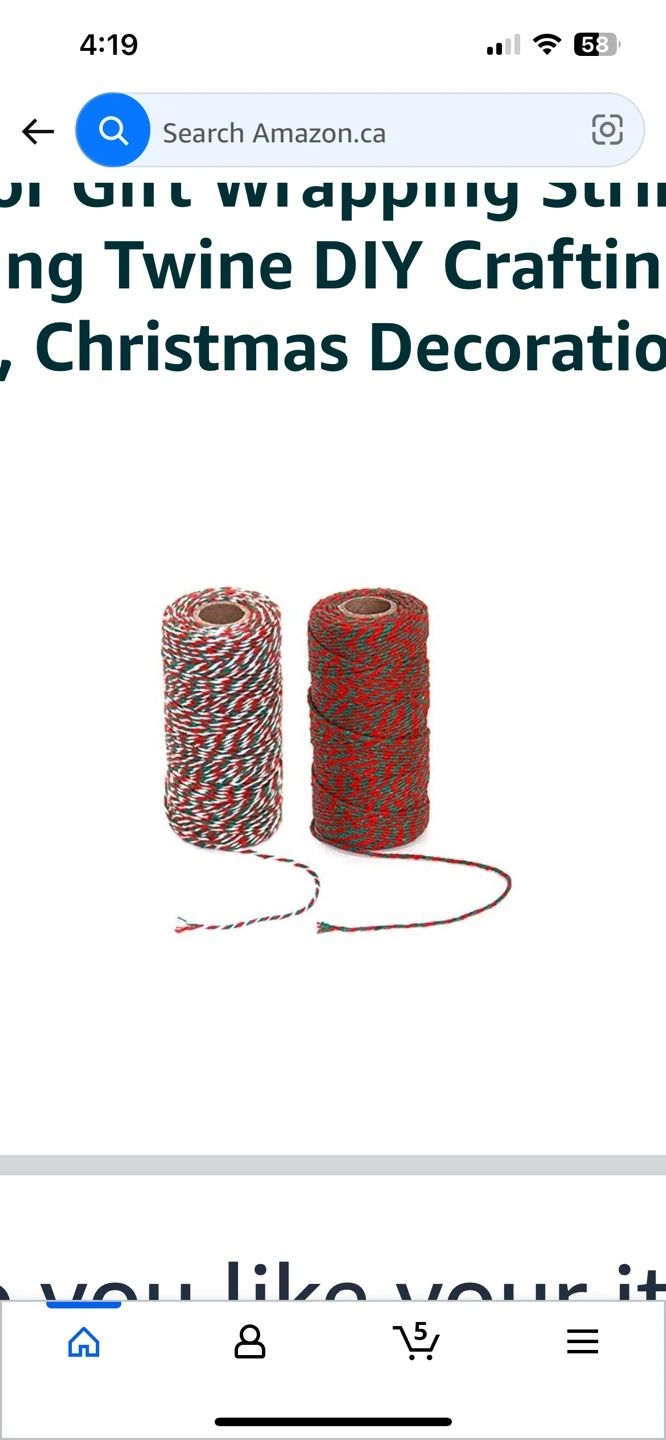 Two spools of baker twine. Red & white, and red & green. New sealed
