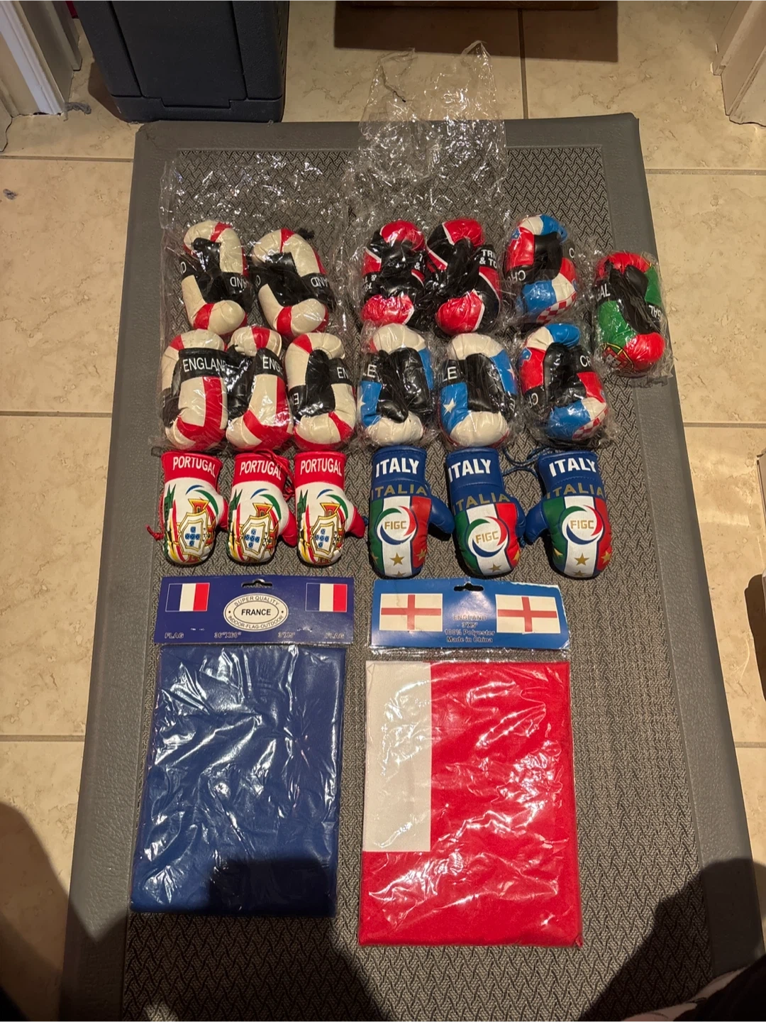 taking offers Selling a collection of country flag boxing glove keychains. They appear to be in new condition, still in their original packaging. Represent your favourite country!