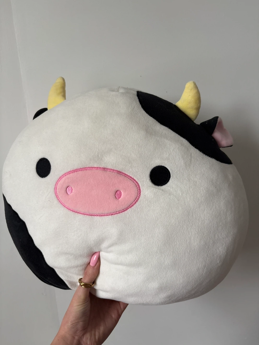 104Selling a cute cow squishmellow pillow! It's in great condition and ready for a new home. It's super soft and cuddly, perfect for kids or anyone who loves cows