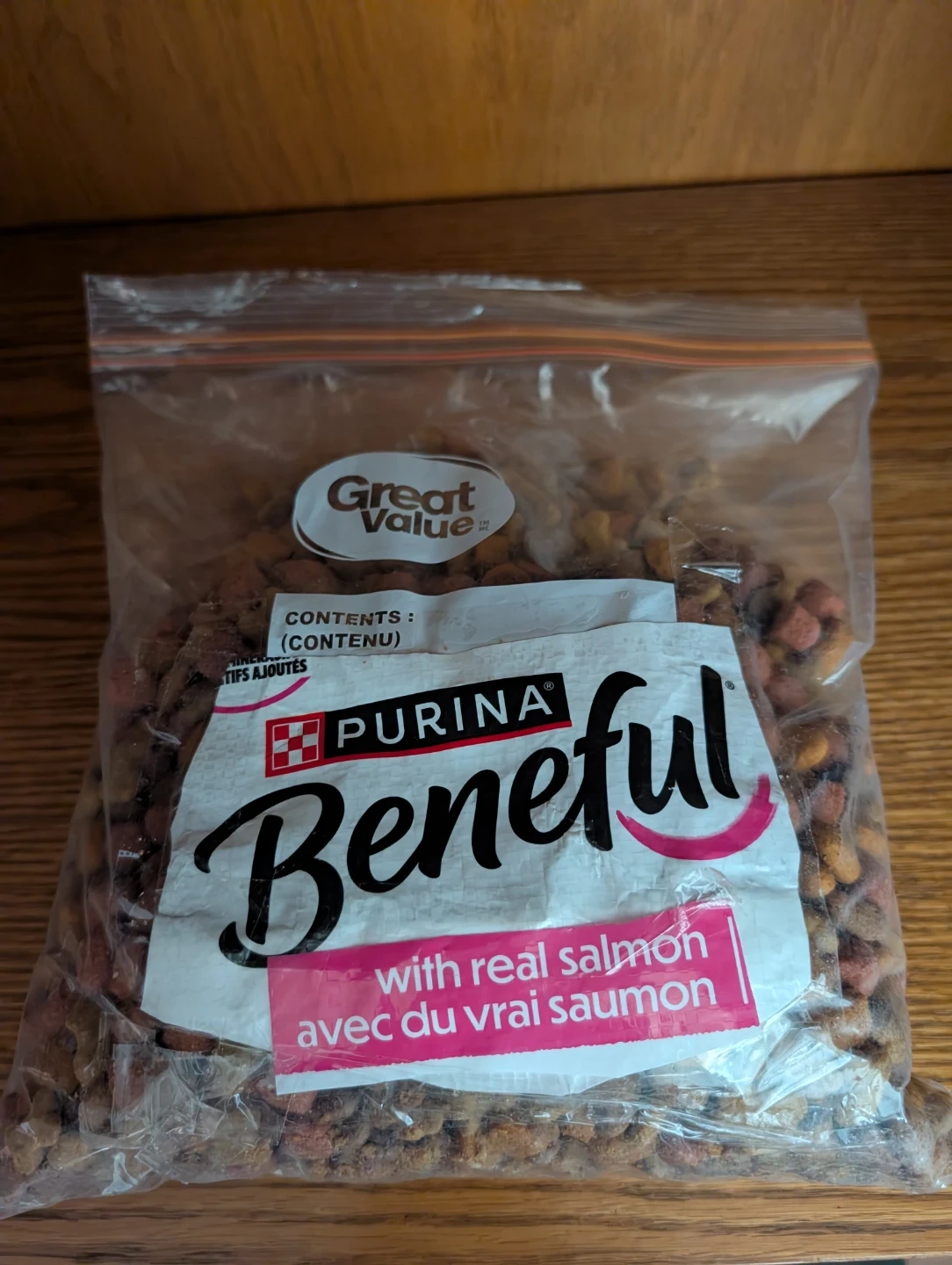 Purina Beneful dry dog food with real salmon flavour.