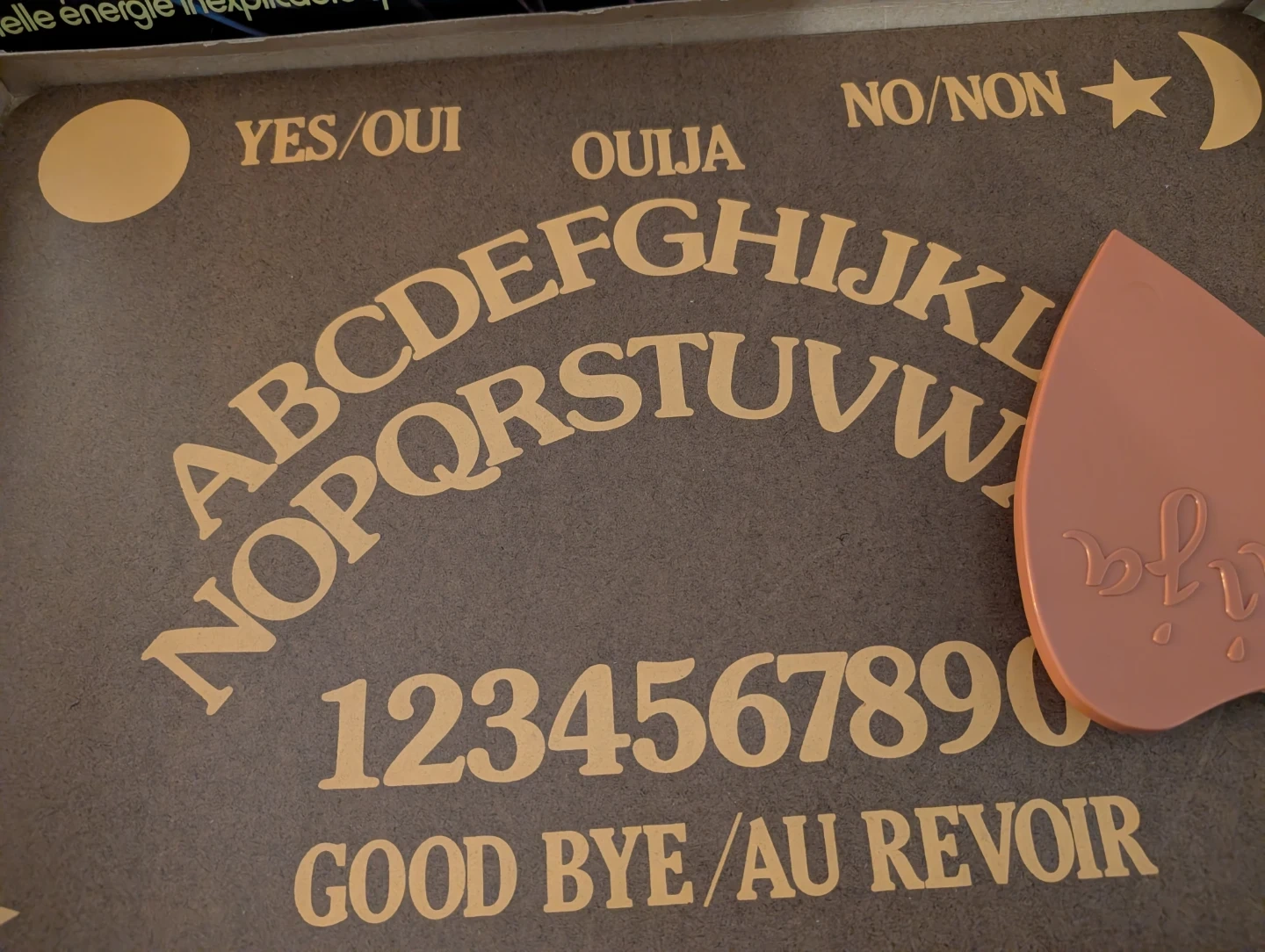 This is a classic Ouija board game manufactured by Parker Brothers. It includes the board and the planchette. This game is perfect for a spooky night with friends or family looking for some mysterious fun!