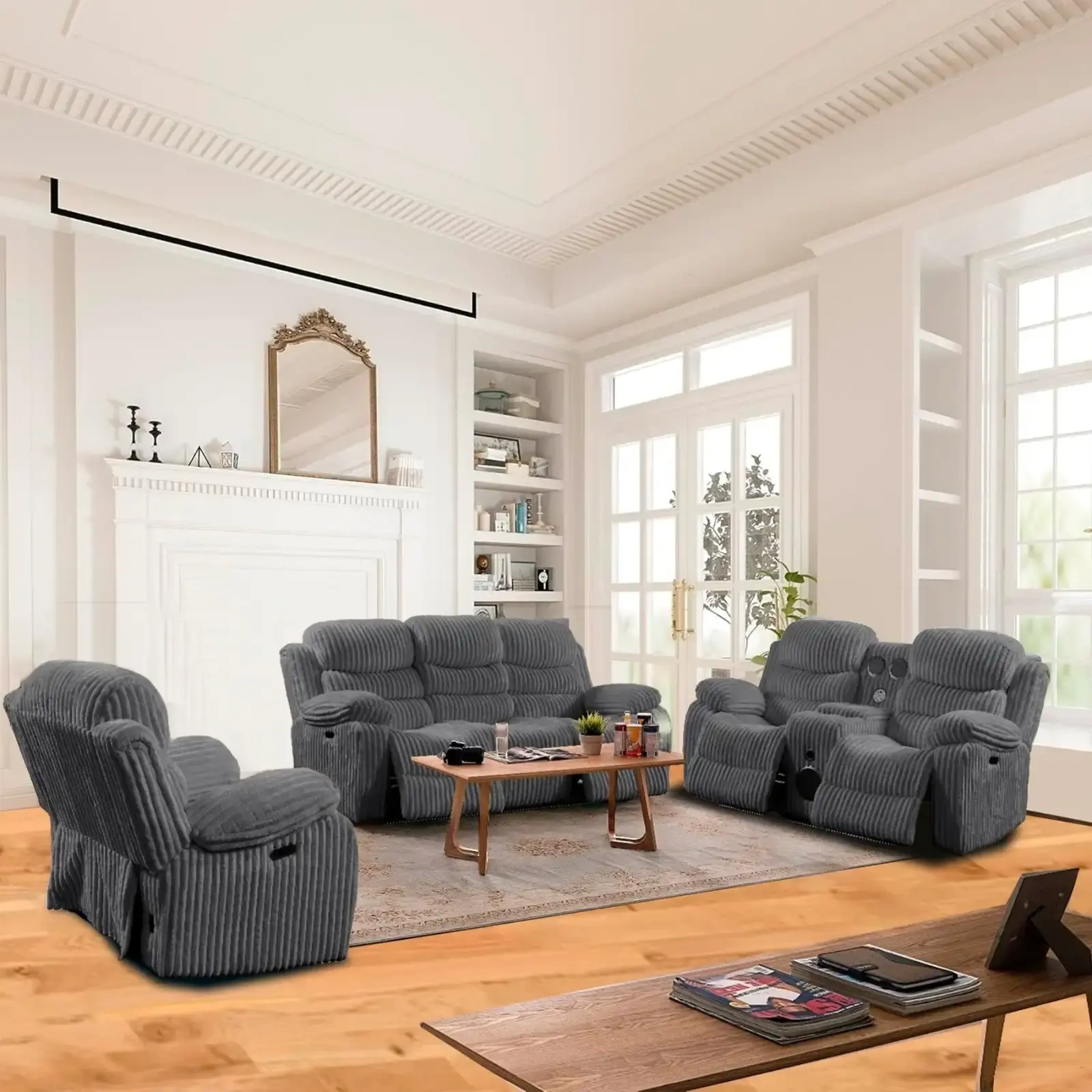 20We sell Pullout Bed, Sleeper couches, dining tables, kitchen tables, dinette sets, bedroom sets, single beds, futon, sofabed, sectional beds, sleeper couches, bunk beds, recliner sets, leather sofas, table lamps, pull out bed, sleeper sofa, twin bed mattresses, roll mattresses, memory foam mattresses, queen bed frame, metal bed frames, accent chairs, coffee tables, end tables, night tables, console table, sofa tables dining chairs, wooden tables, king bed frame kids bed children’s furniture, floor lamp, wall art, paintings, rugs, etc…… Cascade 3-Piece Power Recliner Set In Luxurious Fabric Upholstery – Grey Recliner Chair Traits: • 1 Power Recliner: Single power recliner that offers personalized comfort at the touch of a button. • Dimensions (L x W x H): 34" x 27" x 31" Recliner Loveseat Traits: • 02 Power Recliners: Dual power recliners offer comfort for two, allowing each person to recline independently. • Built-in Cup Holders: Conveniently placed 02 cup holders ensure that your favorite beverages are always within reach. • Storage Compartment: A built-in storage compartment provides a discreet place to store remotes, magazines, or other essentials. • Bluetooth Speakers: High-quality Bluetooth speakers deliver premium sound, enhancing your entertainment experience. • Dimensions (L x W x H): 61" x 27" x 31" Recliner Sofa Traits: • 02 Power Recliners: With two power recliners, this sofa offers luxurious comfort for you and your guests. • Drop-Down Tray: The drop-down tray provides a convenient surface for snacks, drinks, or devices, complete with two cup holders. • Dimensions (L x W x H): 76" x 27" x 31" Sale Price $2399 Cod Available Order From Our WEBSITE and Get It Delivered to Your Home www.cosmichomescanada.com *****WhatsApp: 226-883-3111***** $$DELIVERY AVAILABLE AT ADDITIONAL COST $$ *********CASH ON DELIVERY IS ALSO AVAILABLE PLEASE CONTACT**********