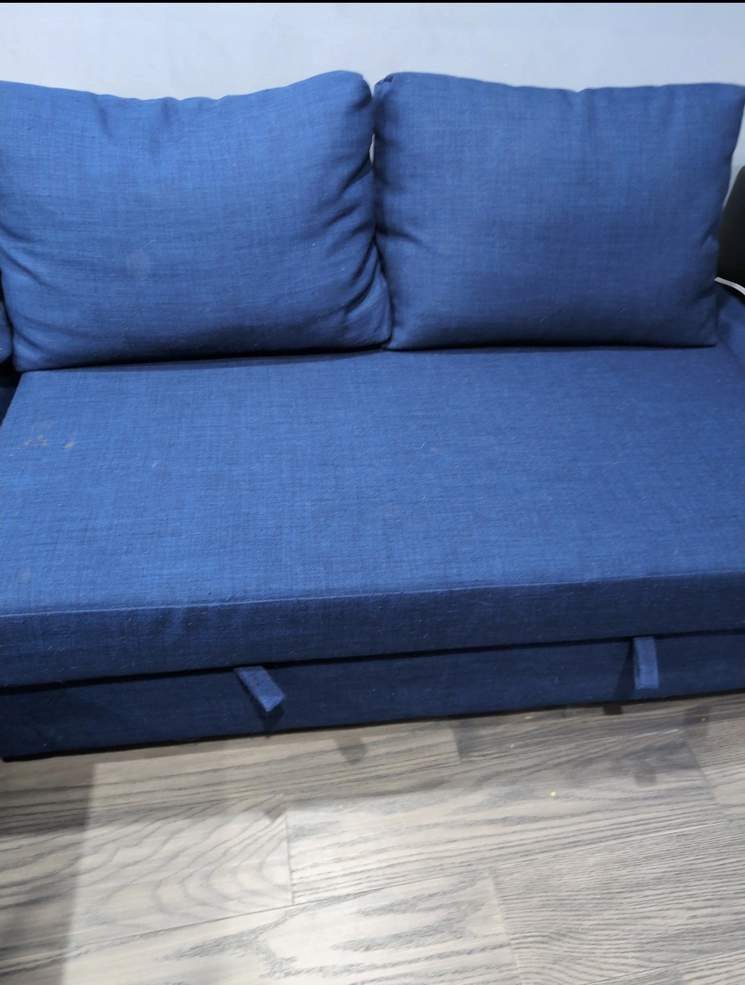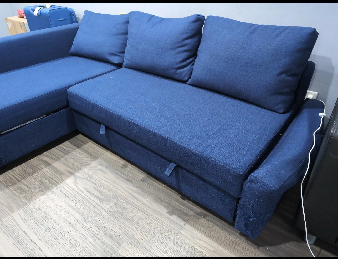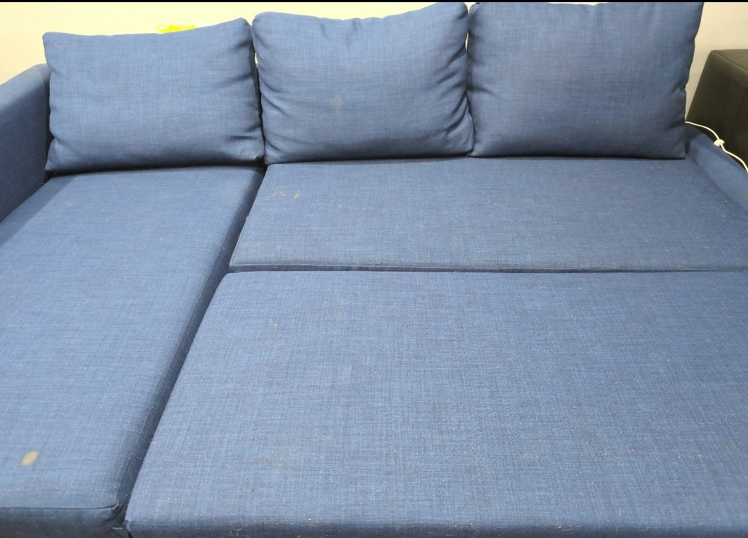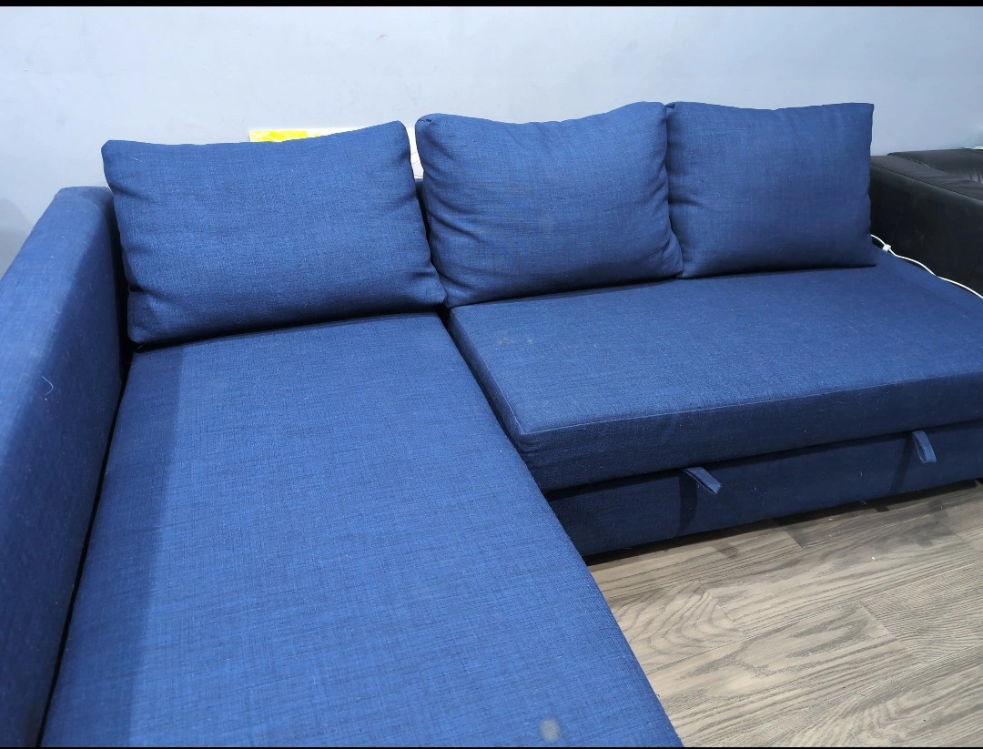 20Looking for that perfect cozy corner for movie nights, guests, or weekend naps? This **blue pullover sofa** easily transforms from a stylish sofa into a comfy bed. It’s soft, spacious, and perfect for both lounging and sleeping ideal for smaller spaces or anyone who loves multifunctional furniture. * Gently used and well cared for * Smooth pullout function - super easy to switch from sofa to bed - huge storage * Seats 3-4 people, sleeps 1–2 comfortably *There are slight thread scratches at the bottom - barely noticeable, but with your preferred sofa cover, it’ll look and feel brand new. An absolute steal for this level of comfort and style! Snag it before it’s gone - comfort like this doesn’t last long.