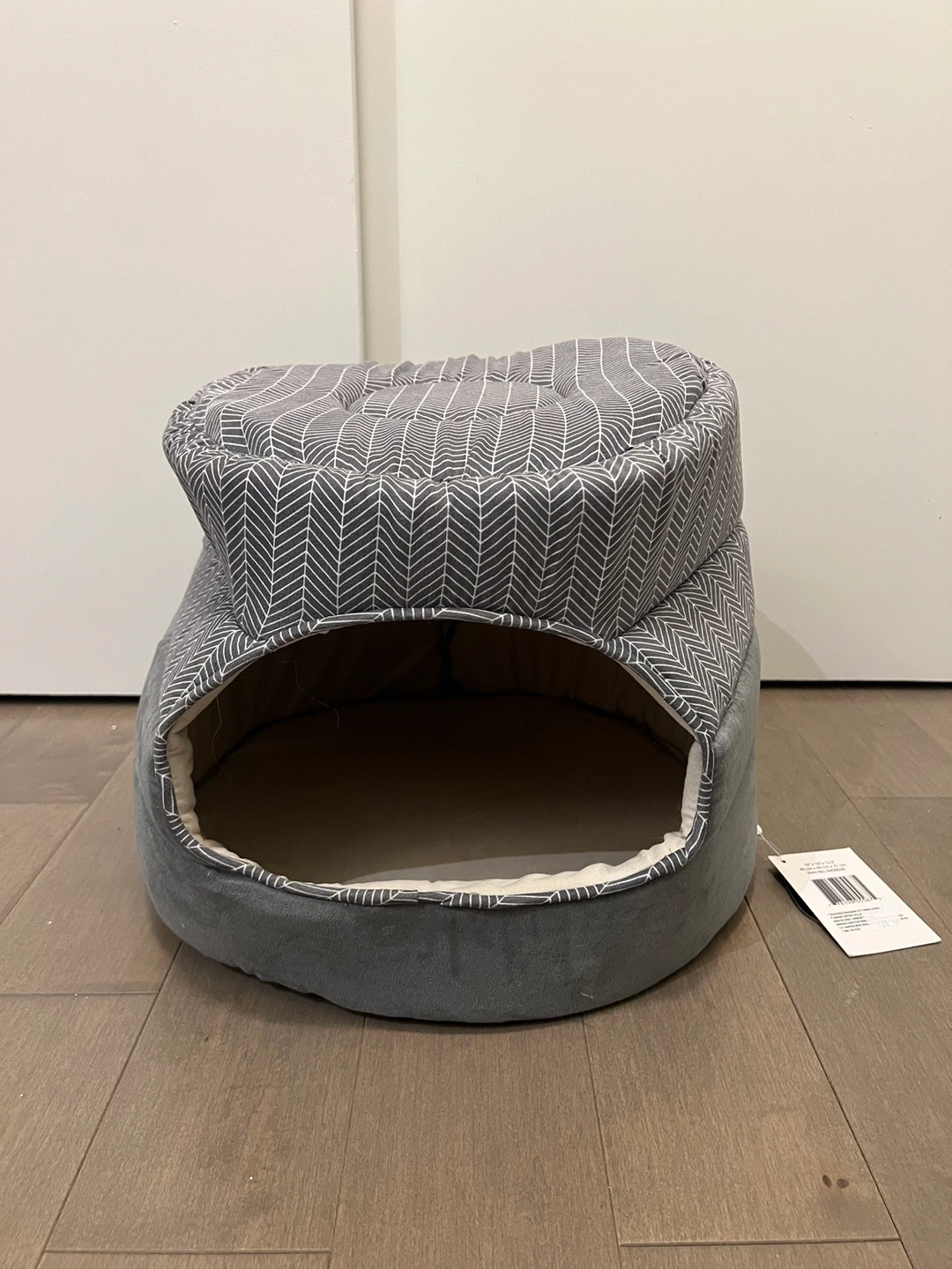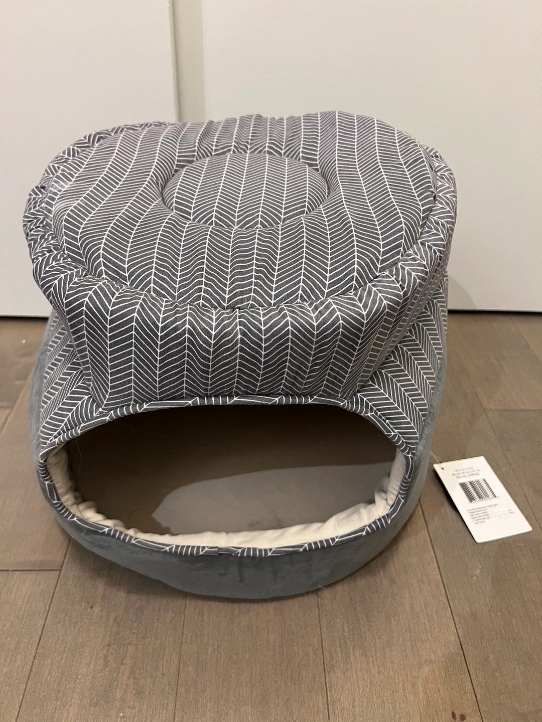 266Snug cat cave in excellent condition. Not too small, good size, has enough space for adult cats. Barely used and well maintained :)