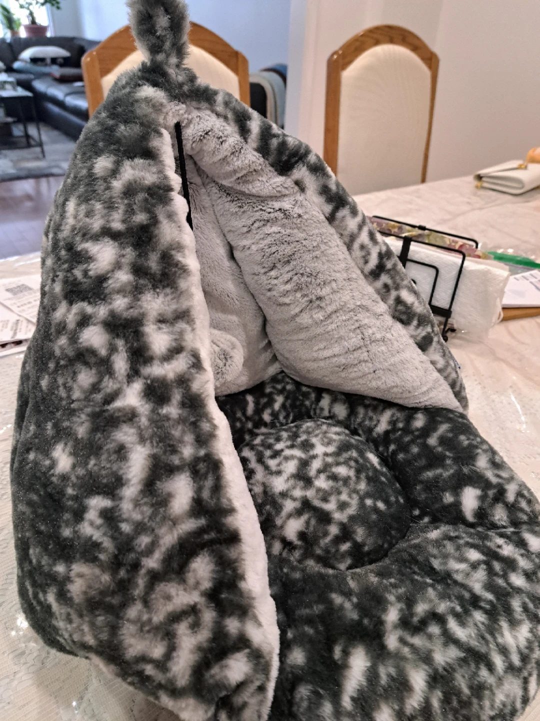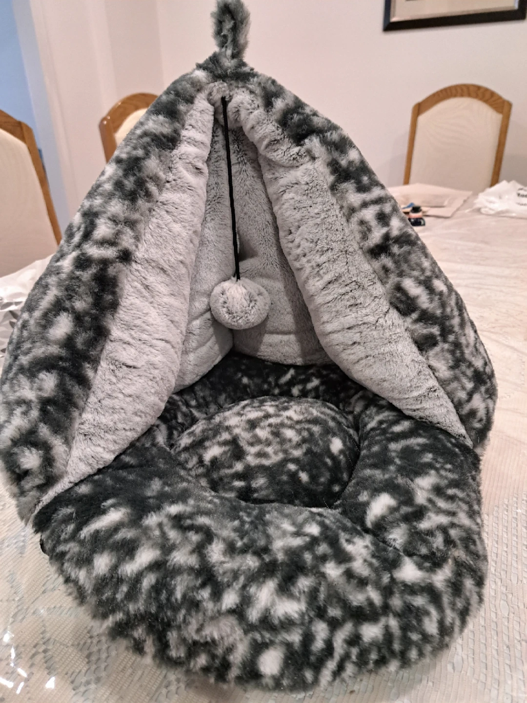 10A super cozy pet bed, perfect for cats or small dogs who love to burrow! It's in great condition and ready for a new furry friend to enjoy. The soft, plush material will keep your pet warm and comfortable. Size: 16"×16"×16"