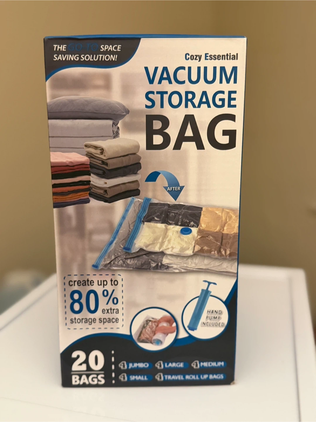 65Get more space with these Cozy Essential vacuum storage bags! This pack includes 20 bags in various sizes: jumbo, large, medium, small, and travel roll-up bags. They help create up to 80% extra storage space, so you can compress, protect, and organize your items. A hand pump is included to help vacuum out the air.