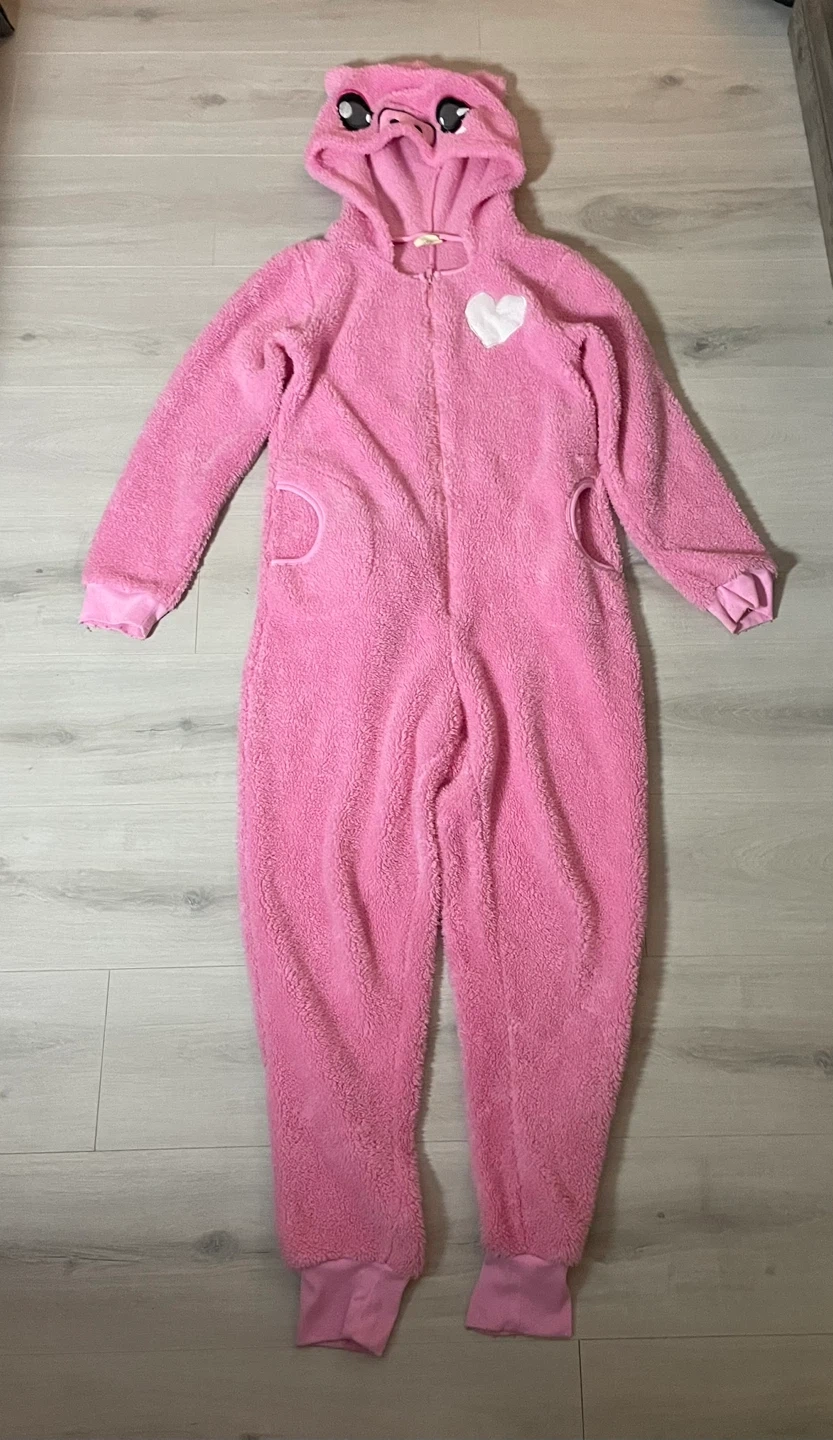 91Stay warm, comfy, and adorable this season with this super soft pink pig onesie! Made with plush fleece material, it’s perfect for snuggling up at home, costume parties, or Halloween night. ✨ Features: Size: Women’s Small Soft, cozy, high-quality fleece Cute hood with pig face & ears Zipper front for easy wear Handy pockets