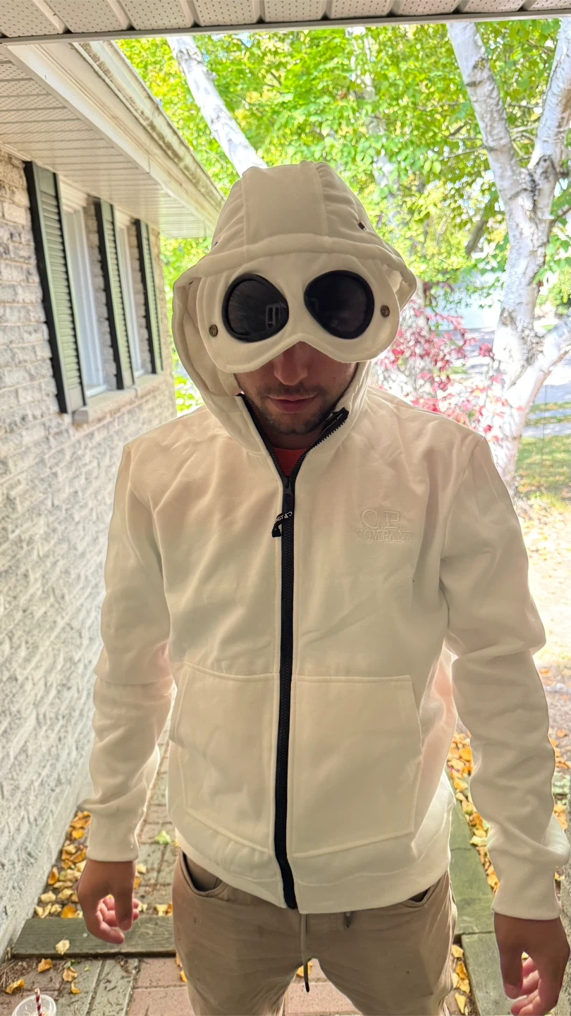 62Selling a CP Company goggle hoodie in white. This stylish hoodie features the iconic goggle design on the hood. Perfect for adding a unique touch to your wardrobe!
