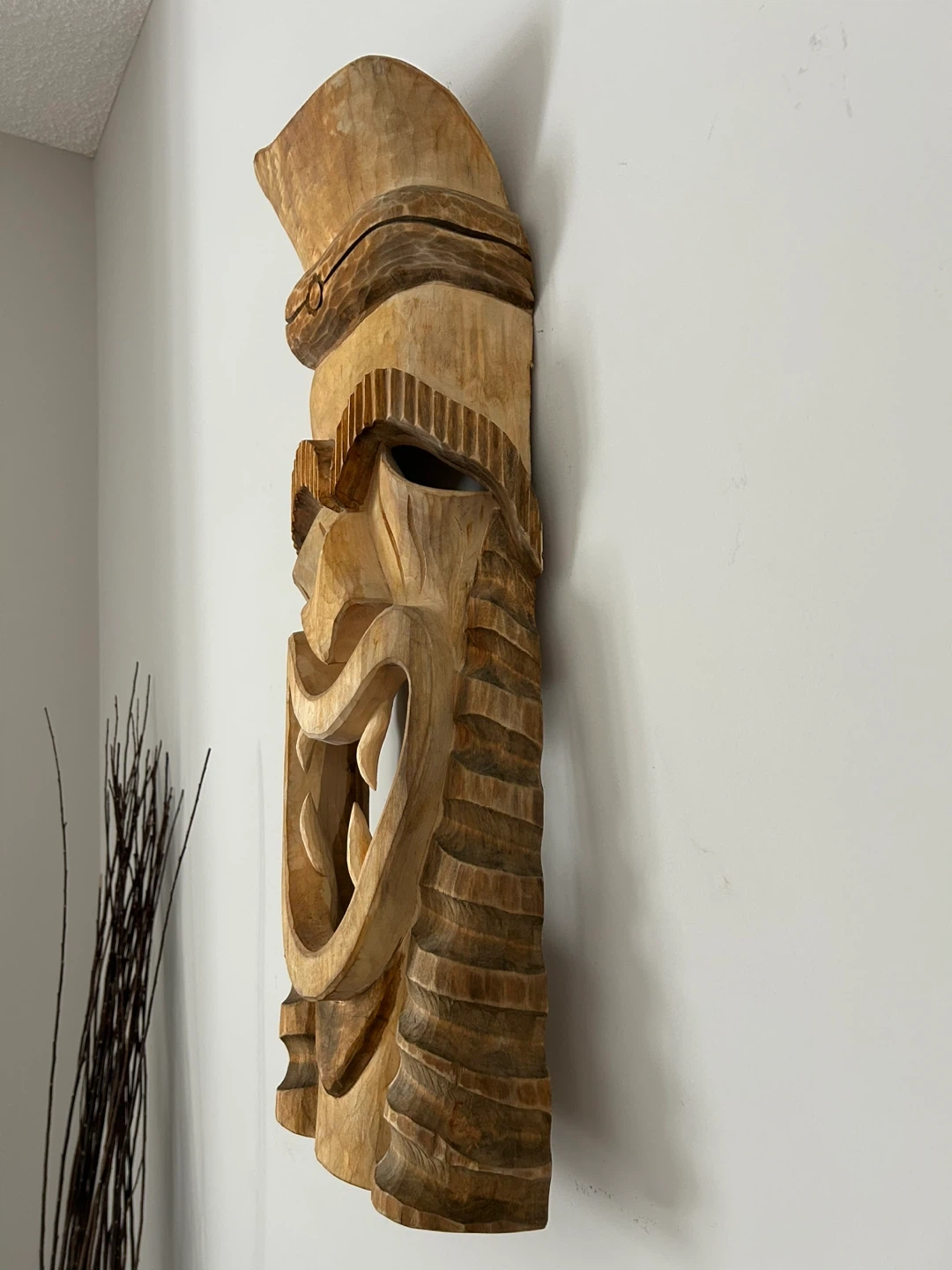 Large 26” Hand-Carved Wooden Tiki Mask