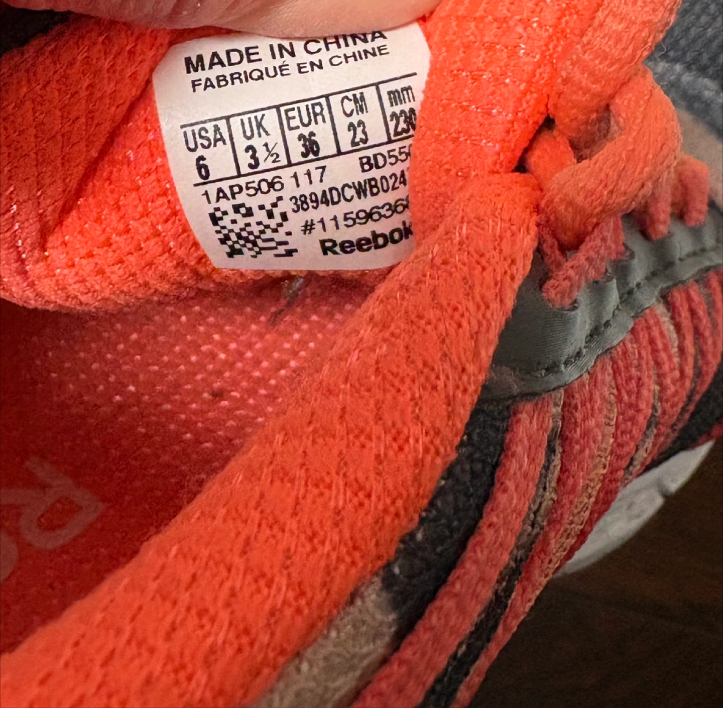 Reebok running shoes in a size 6.