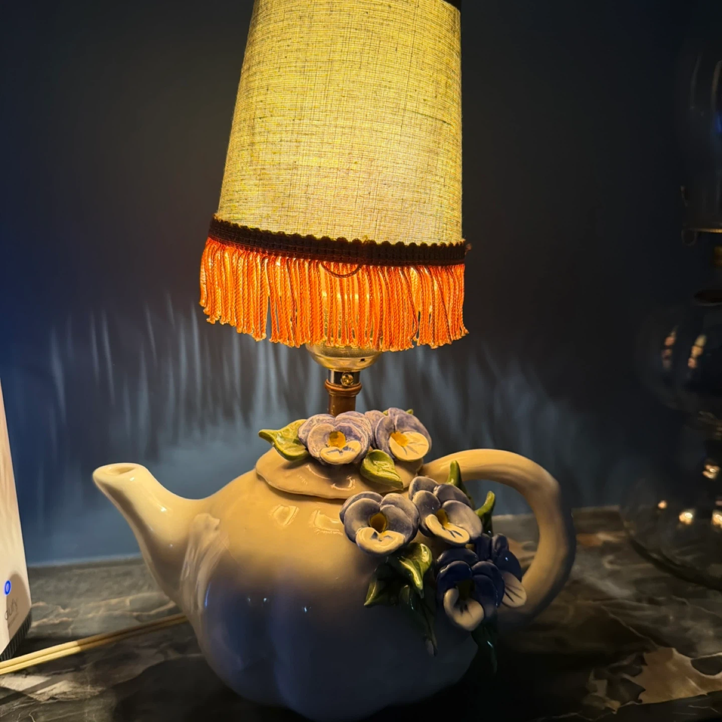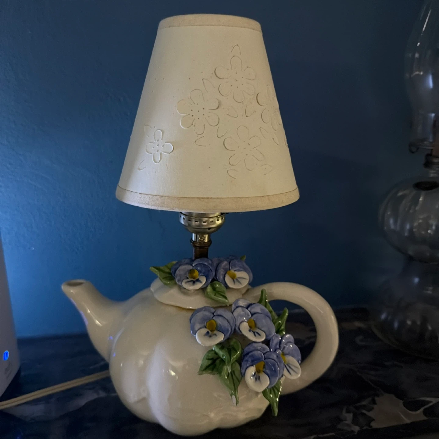 Vintage Ceramic Teapot Lamp with Floral Accents