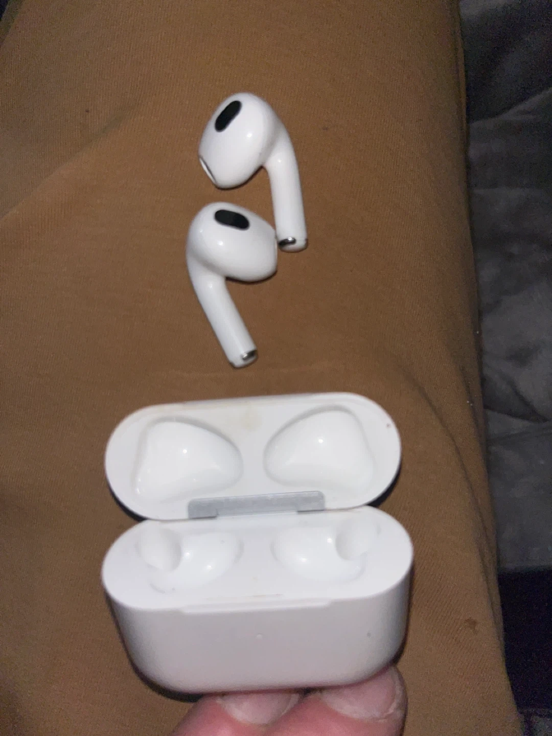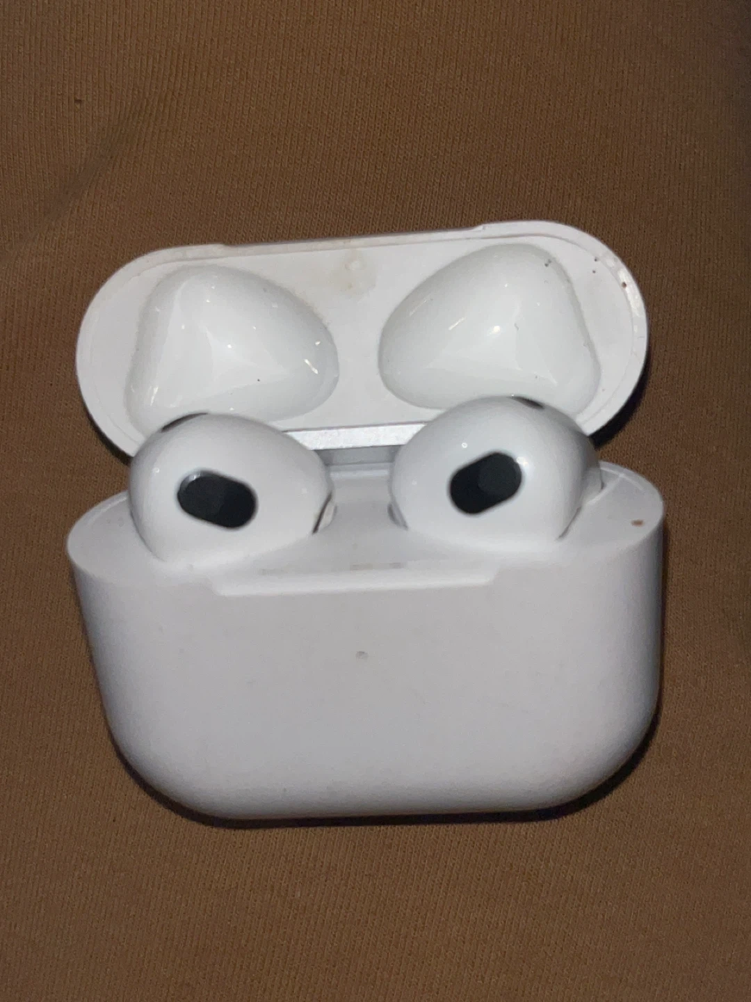 Paire d'écouteurs sans fil Apple AirPods de 3e génération avec étui de chargement. Fonctionnent parfaitement. Idéal pour écouter de la musique ou prendre des appels.