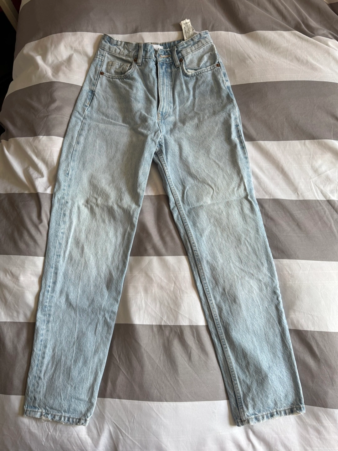 Selling two pairs of Zara Mom Fit jeans! One is a light wash and the other is a dark grey wash. Both are size 2/34 and in great condition! Both Jeans are sold together!
