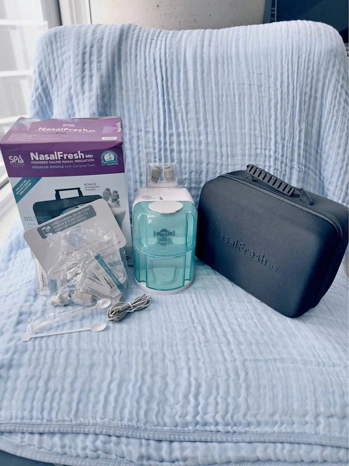 This is the Premium Bundle that comes with the carrying case and bonus accessories. Much more effective than a regular neti pot — gentle but powerful sinus rinse.