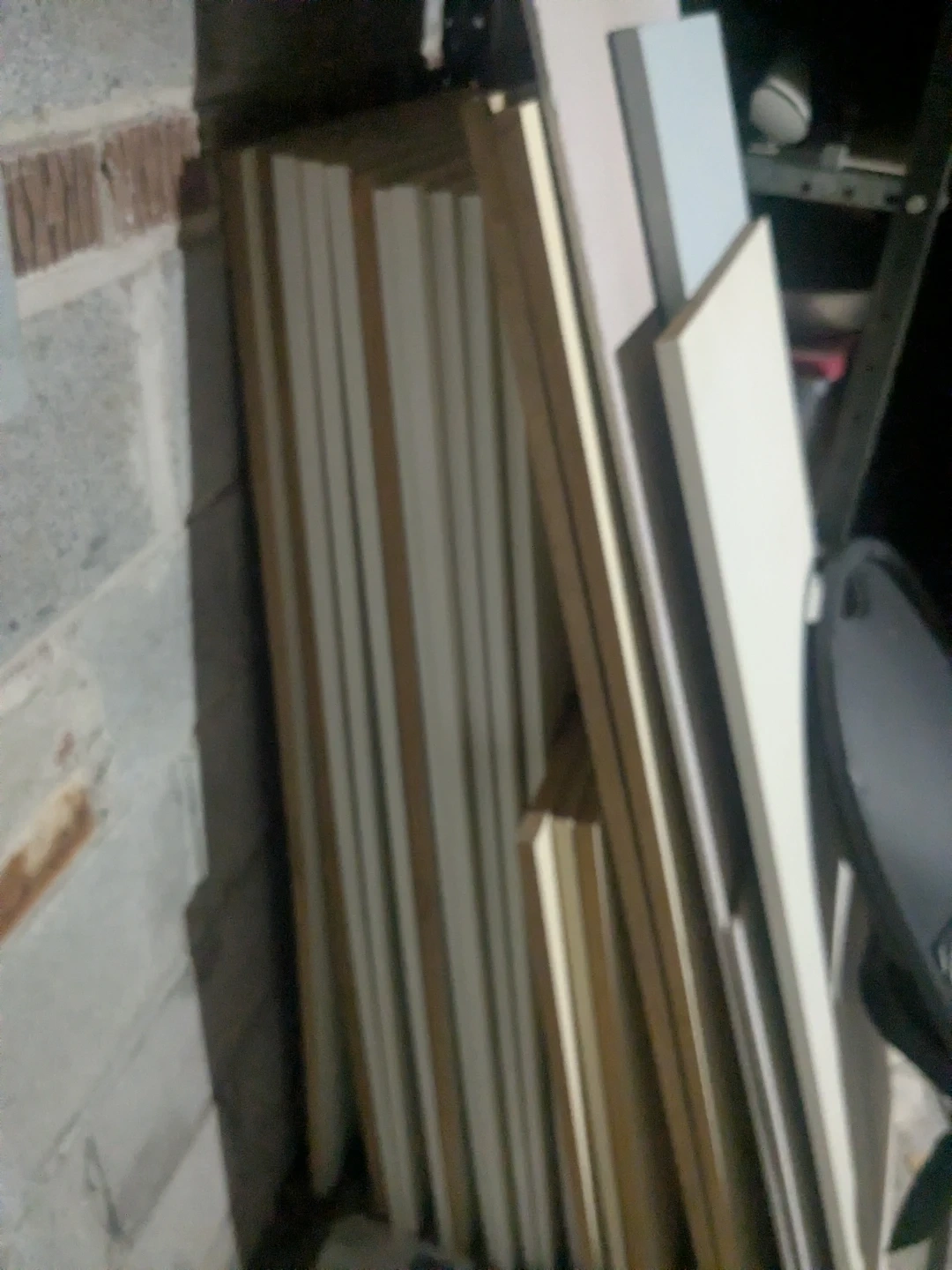 A collection of MDF panels from the closet. Various sizes and finishes included. Some pieces are for shelving or cabinet construction.