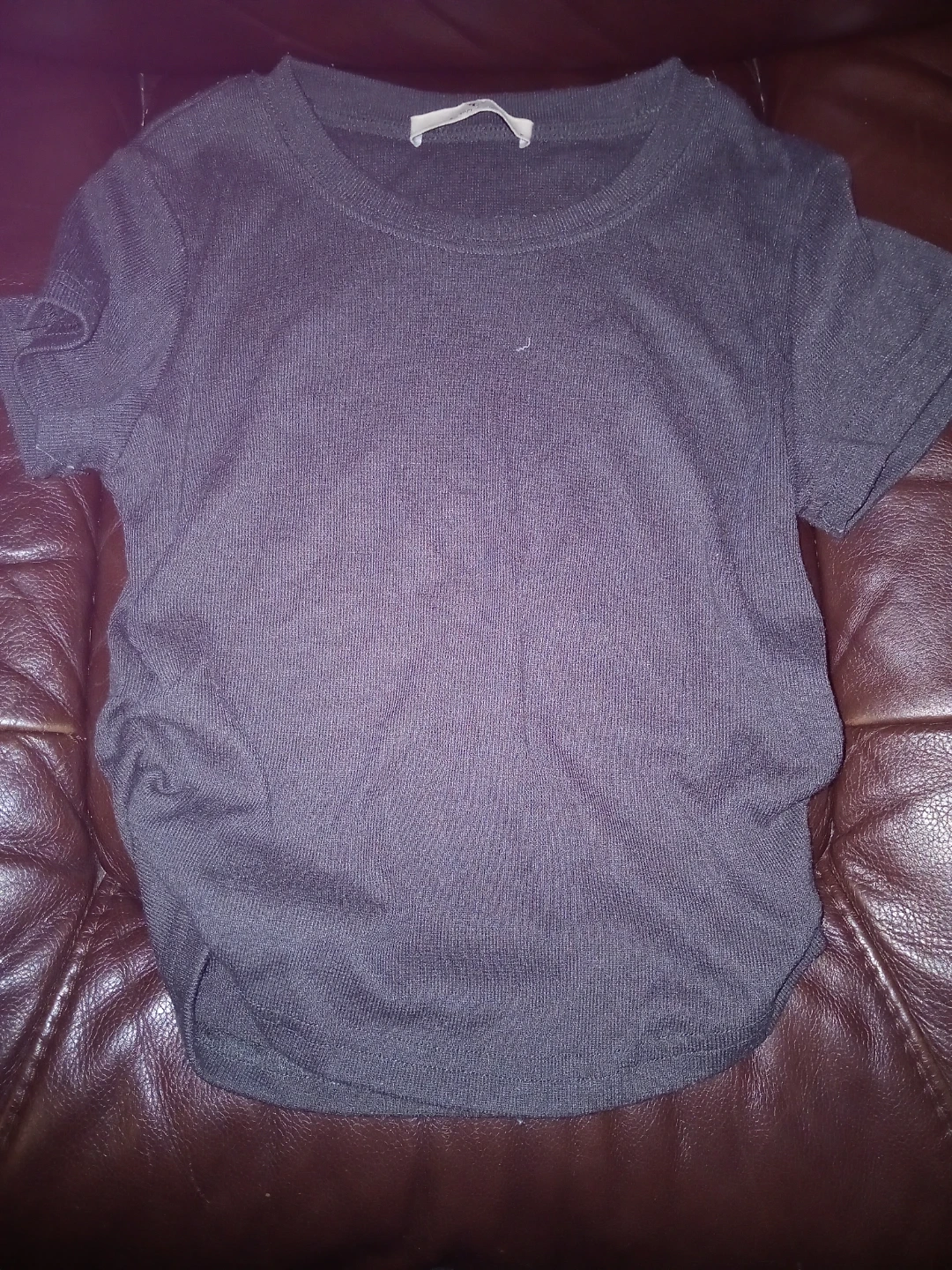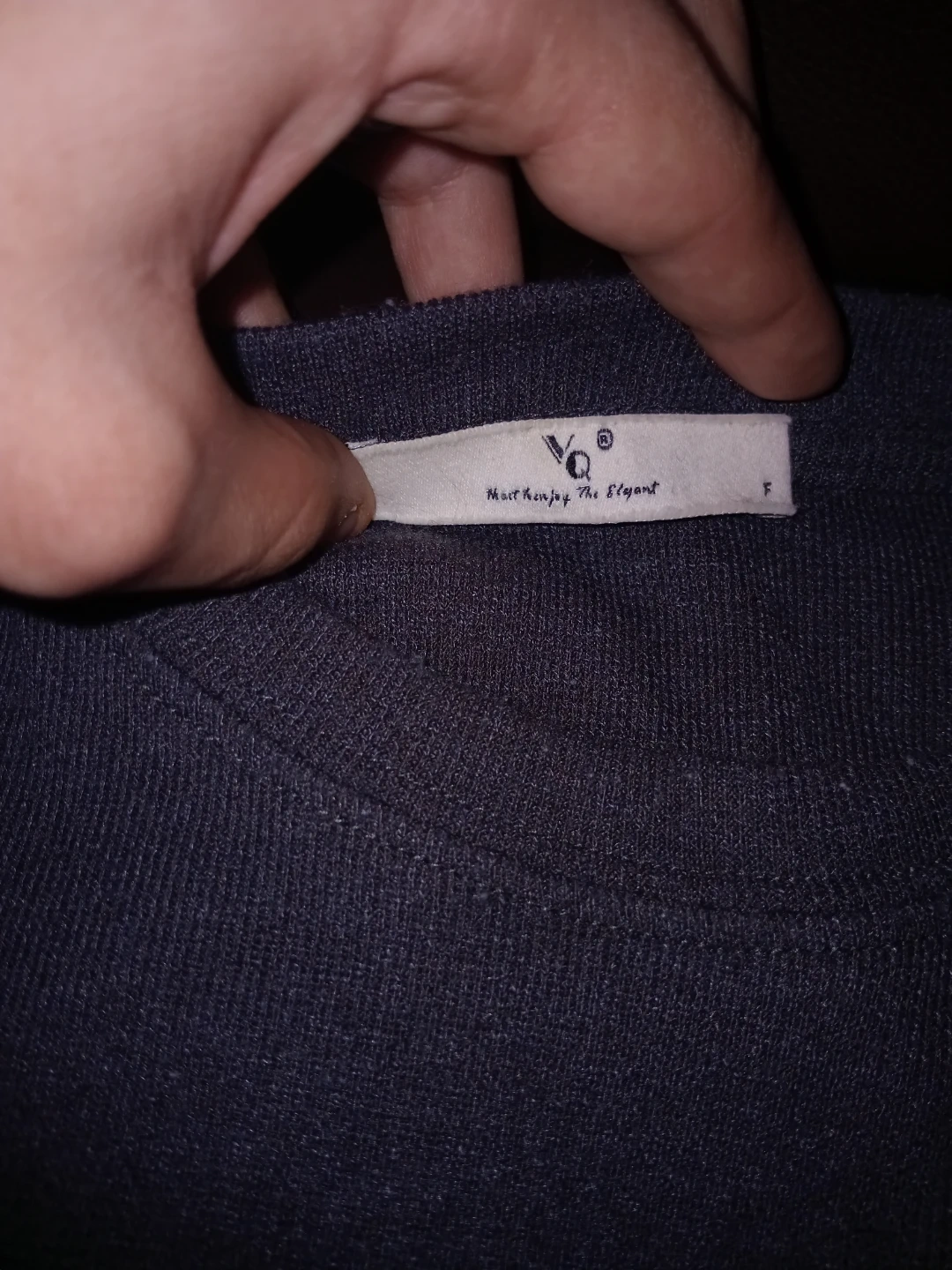 VQ t-shirt with the tag "Most Enjoy The Elegant". It's a dark grey, short-sleeved top. Size s/m is indicated on the tag asking $15