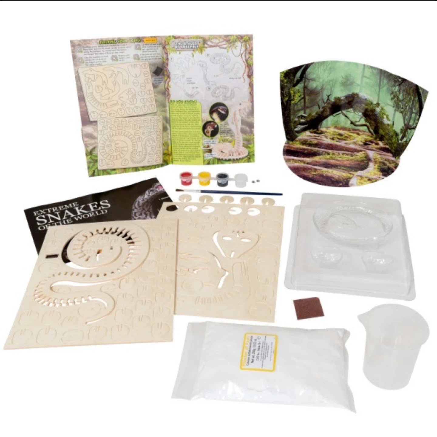 Explore the world of snakes with this Wild Environmental Science kit! It includes everything you need to make a model python and her life-size hatching eggs, and to explore and build a cobra skeleton. This kit is designed to have great play value, while also teaching fascinating scientific principles