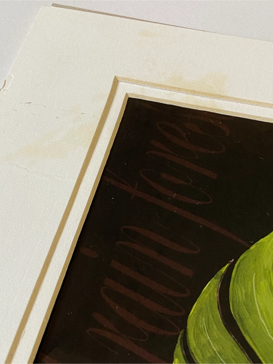 Two framed art prints featuring botanical illustrations. One showcases a Monstera leaf, labelled "Brazil rainforest flora euille N". The other displays a rolled leaf, labelled "rolled leaf". Each piece is signed by artist Marie Fédriqüe. Matting included, frames not specified.