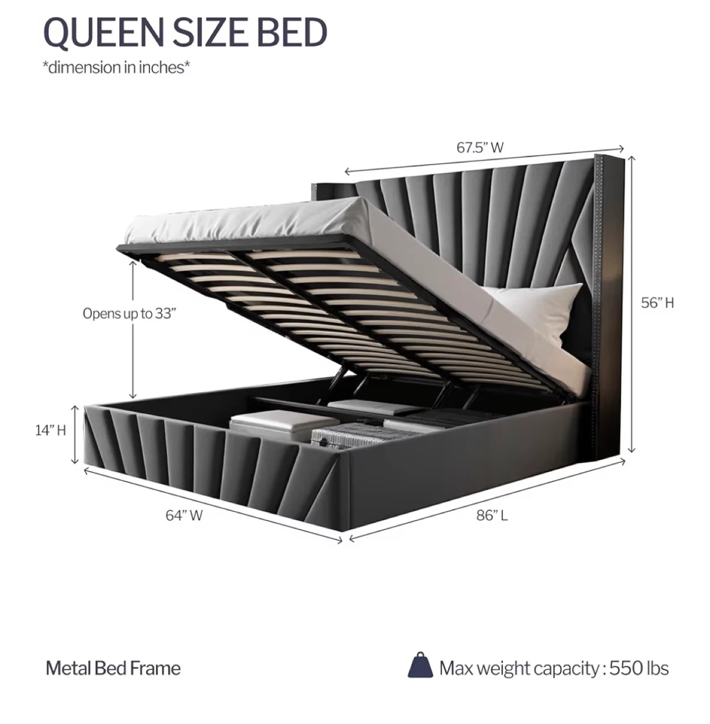 Selling a Queen size bed frame from Aykah. It's the Fez model, upholstered in a lovely grey velvet.