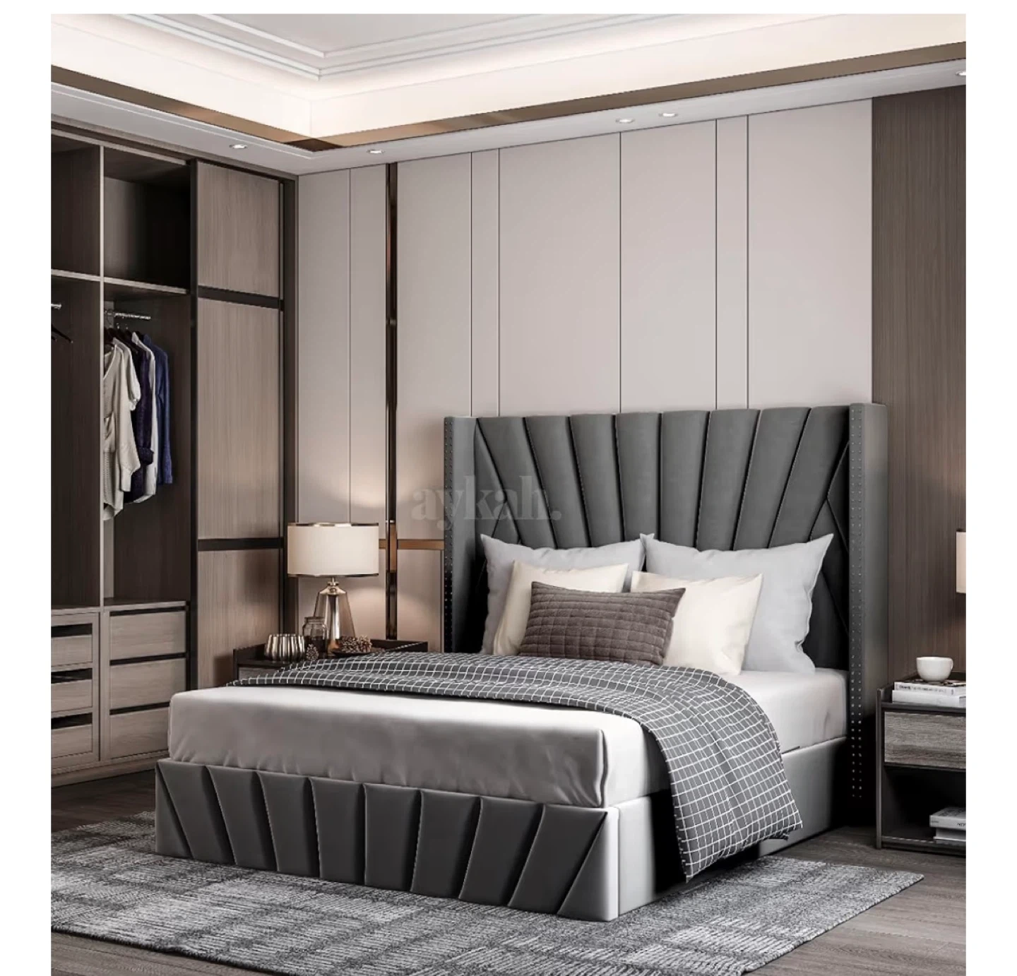 Aykah Fez Queen Size Velvet Bed Frame (Grey)