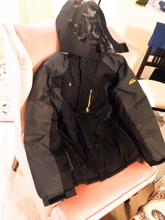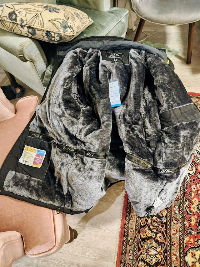 New winter Jacket, great for keeping you warm with a plush interior and water-resistant exterior. In good condition and ready for a new home! Key Features: * Size: L * Colour: Black and grey * Water-resistant * Plush interior lining. Cash accepted.