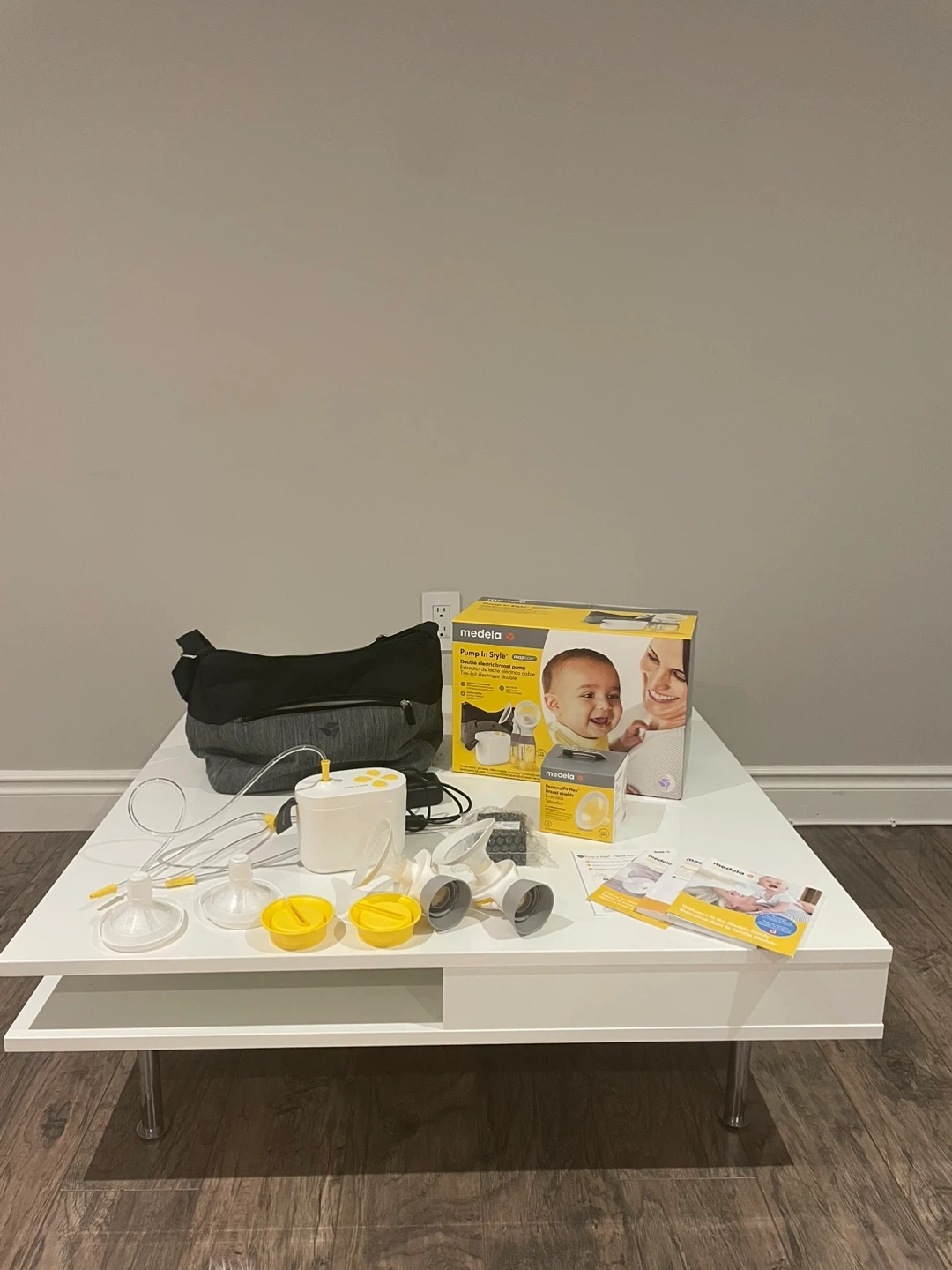 This Medela Pump In Style double electric breast pump comes with everything you need to get started. It includes 5 oz/150 mL bottles, breast shields, tubing, and a power adapter. This pump is designed for hospital performance and is easy to use.