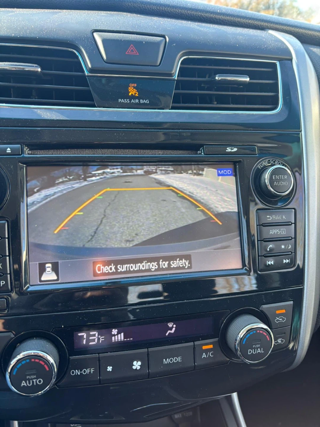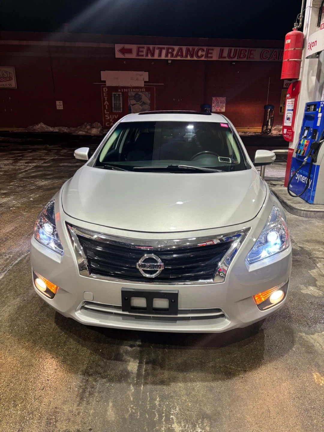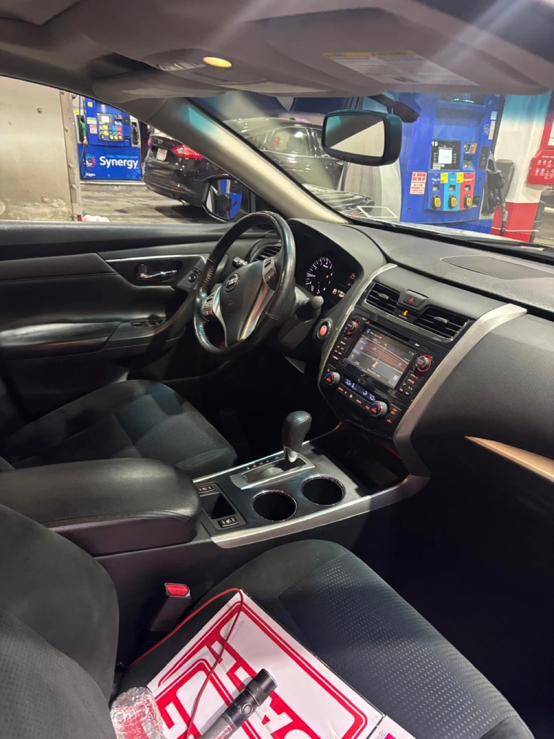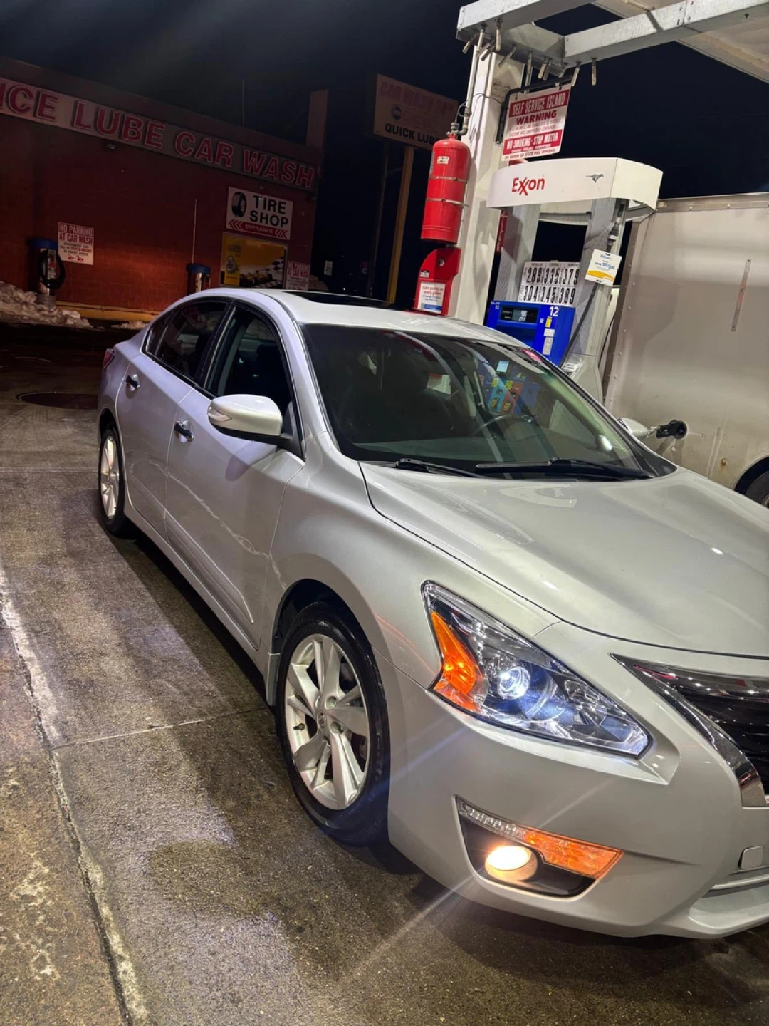 120k miles This is a Nissan Altima sedan. It's a silver four-door car with a sunroof and backup camera. The interior has black cloth seats and a touchscreen infotainment system.
