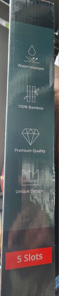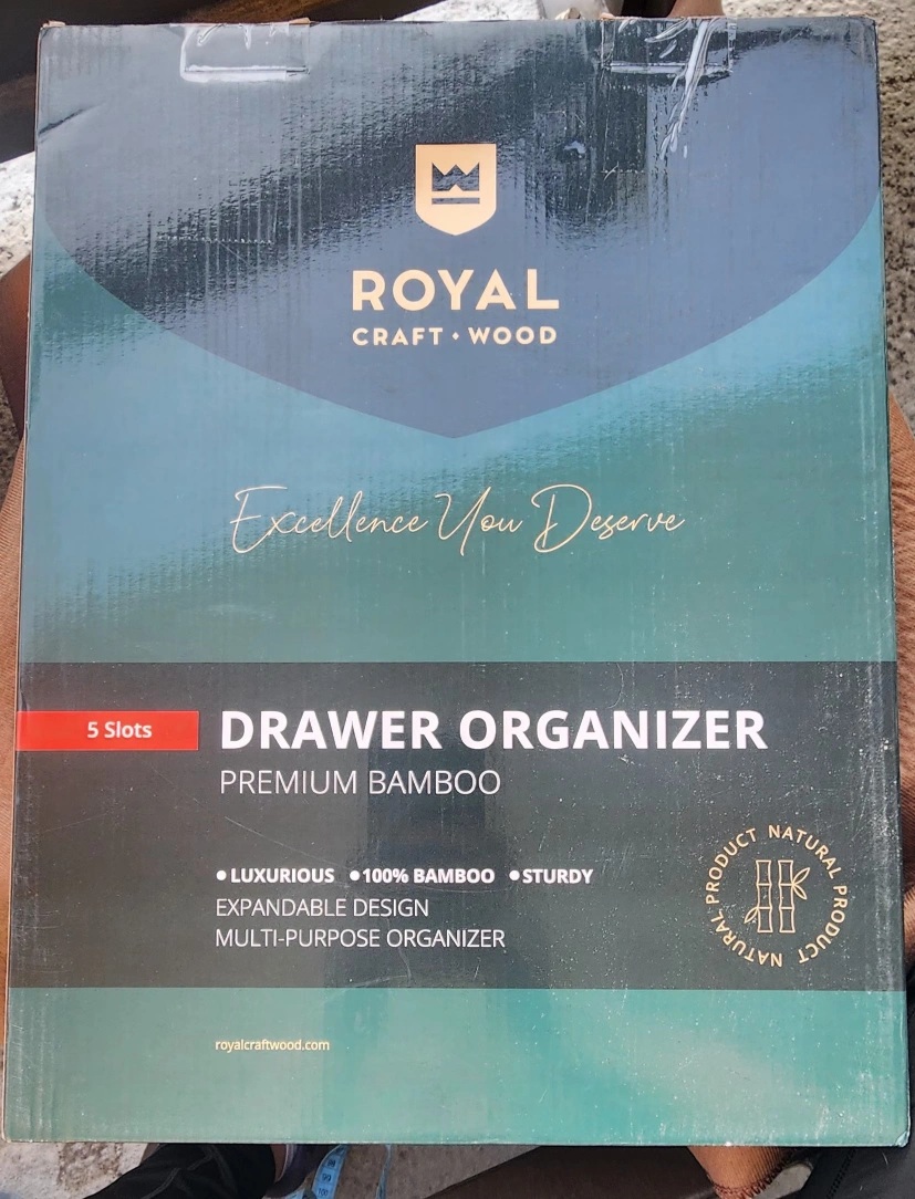 5 Slot Bamboo Drawer Organizer. Expands to fit your drawer. All dimensions are in the pictures. Brand new never used. Box had tape stuck to it from another box while moving.