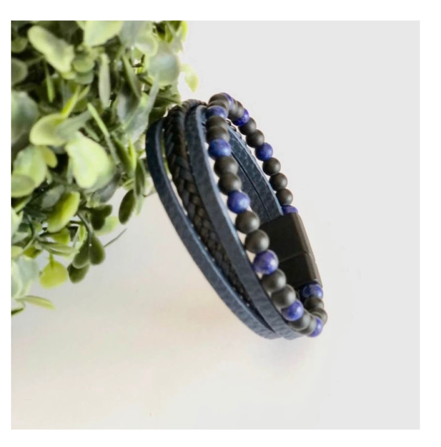 Stylish faux leather bracelets in black,blue and brown tones. These bracelets feature braided designs and unique accents, perfect for adding a touch of flair to any outfit! They are in great condition and ready for a new look.