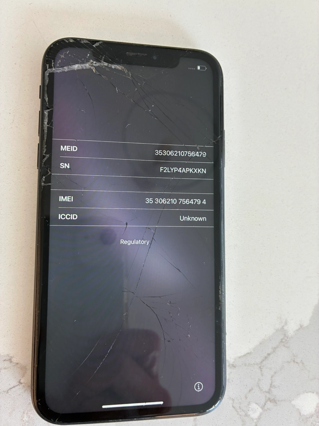 Selling an iPhone in as-is condition. The screen is cracked as you can see in the photos. Good for parts or repair.